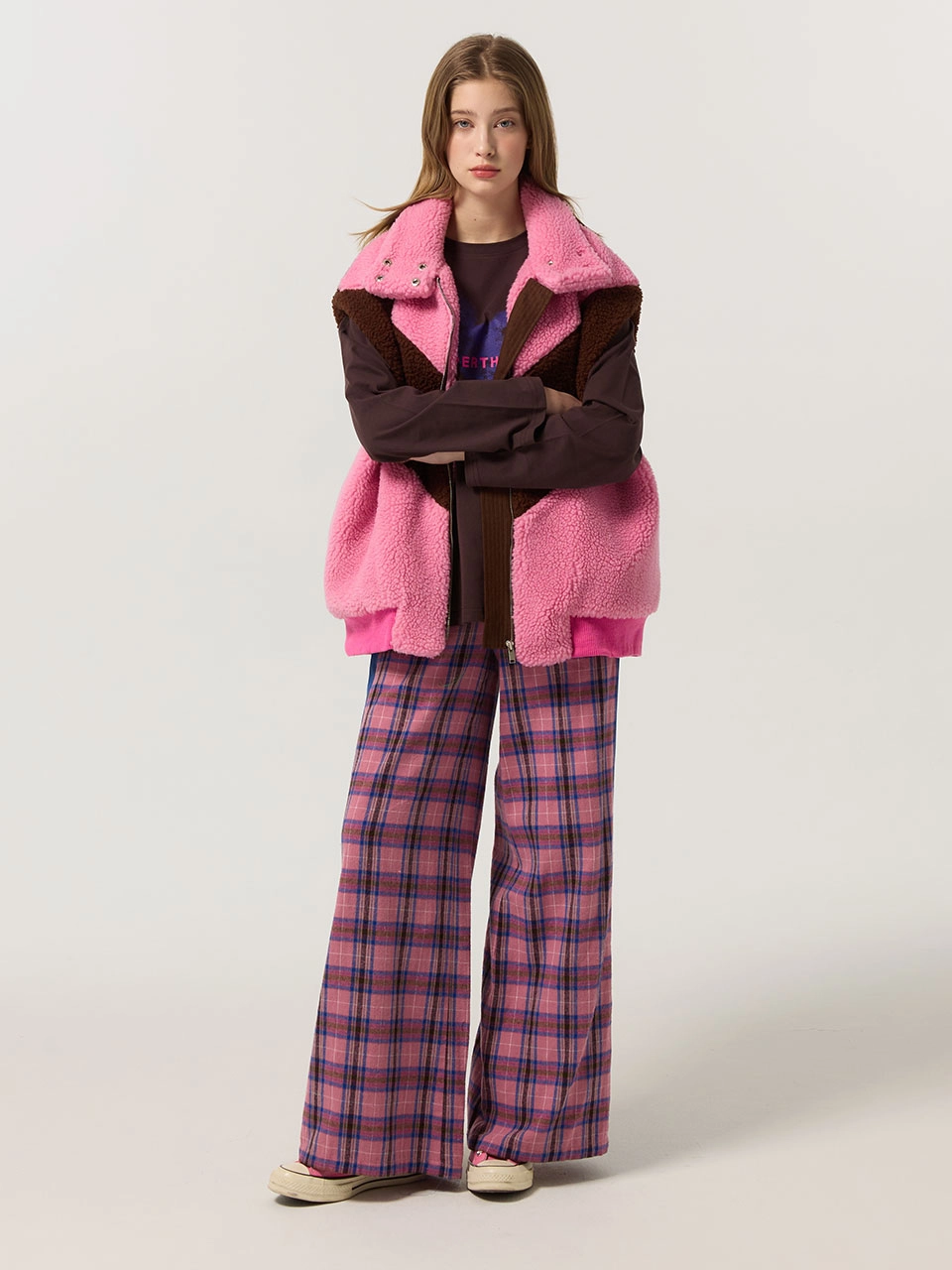 더블 오비 체크 기모 팬츠 (PINK)_ST25FWPT970