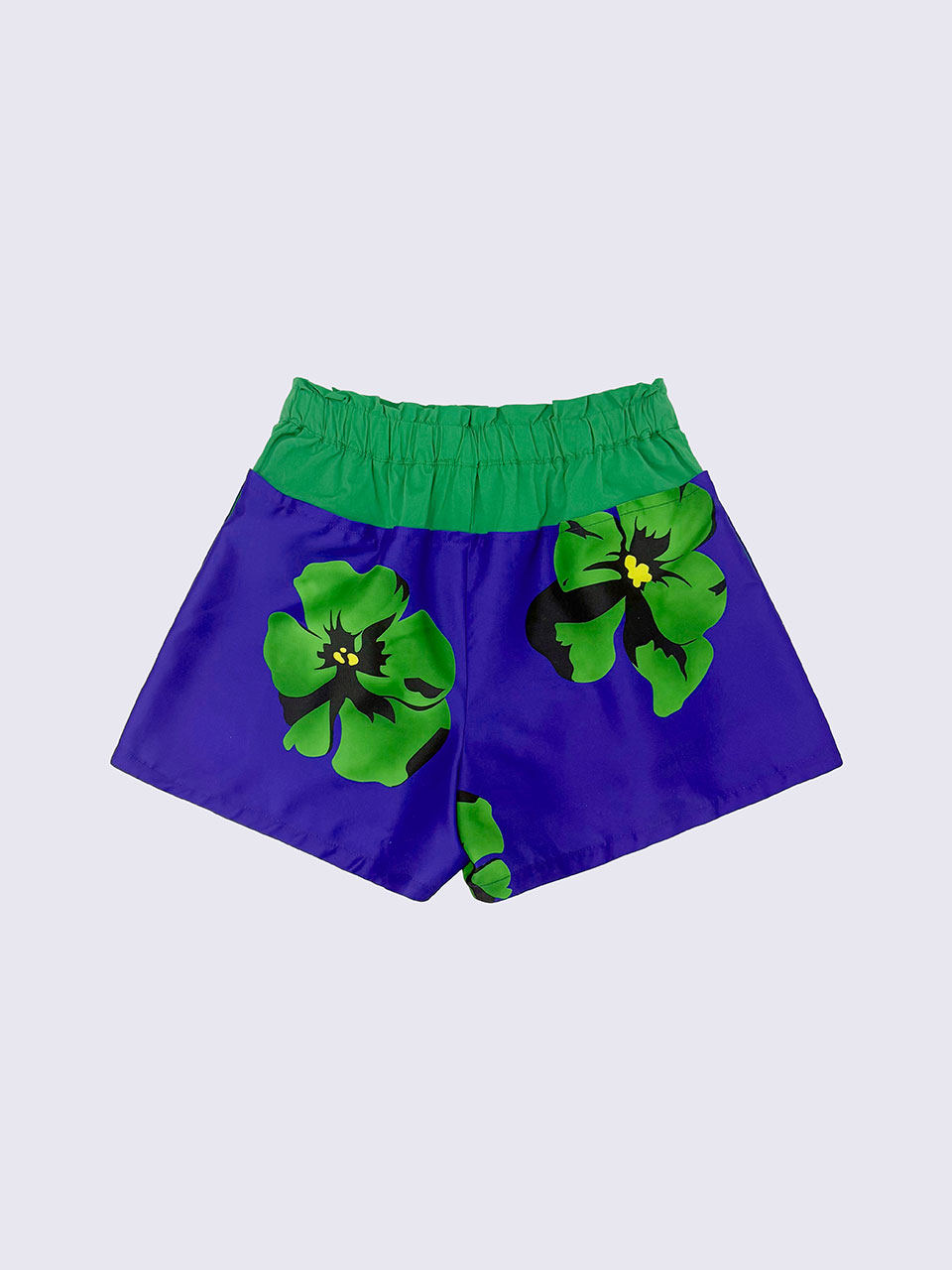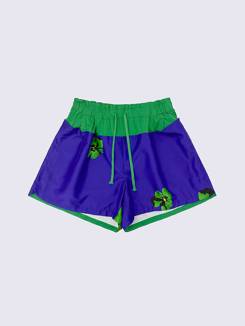 - 플라워 패턴과 우븐 배색이 돋보이는 쇼츠.