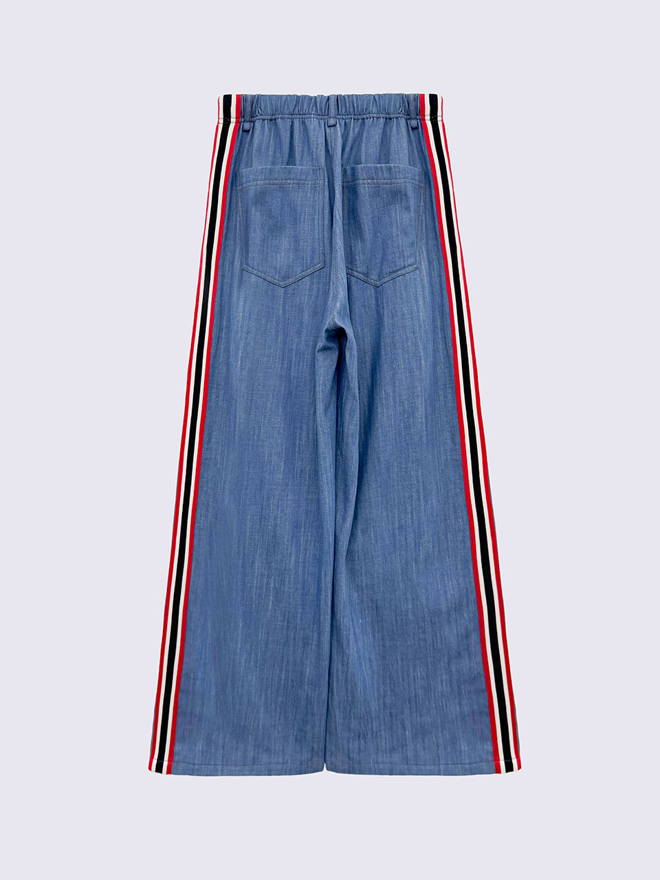 - 양 사이드 테잎 배색 포인트 데님 팬츠.