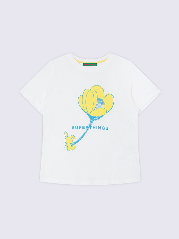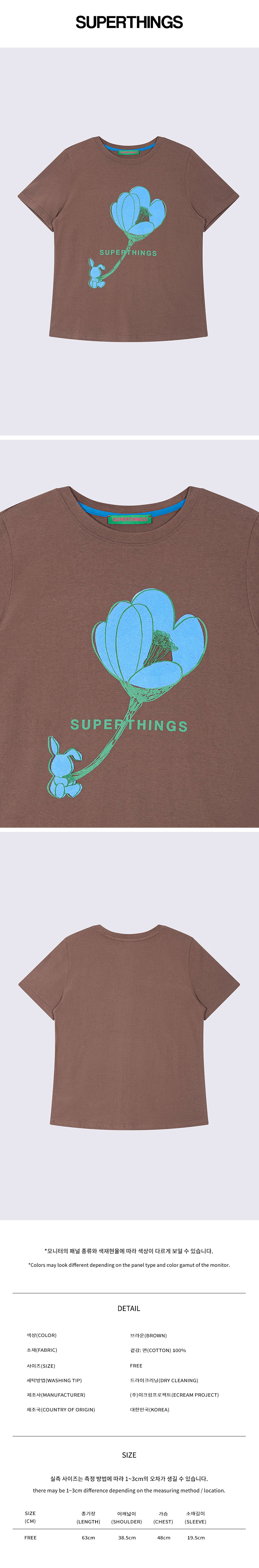 - 플라워, 래빗 프린트와 브랜드 로고 포인트 티셔츠.