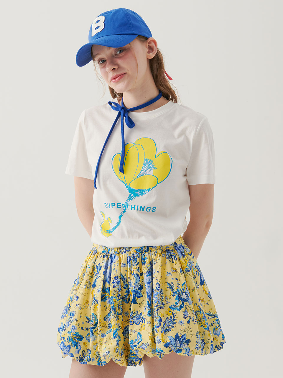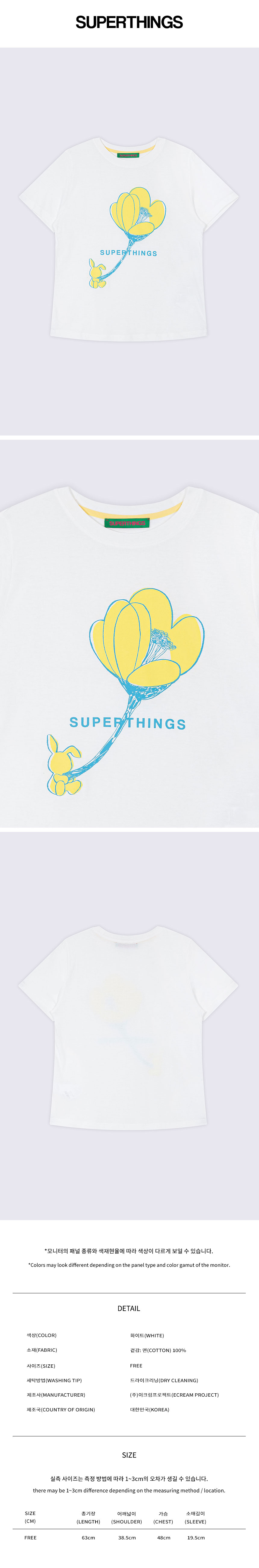 - 플라워, 래빗 프린트와 브랜드 로고 포인트 티셔츠.