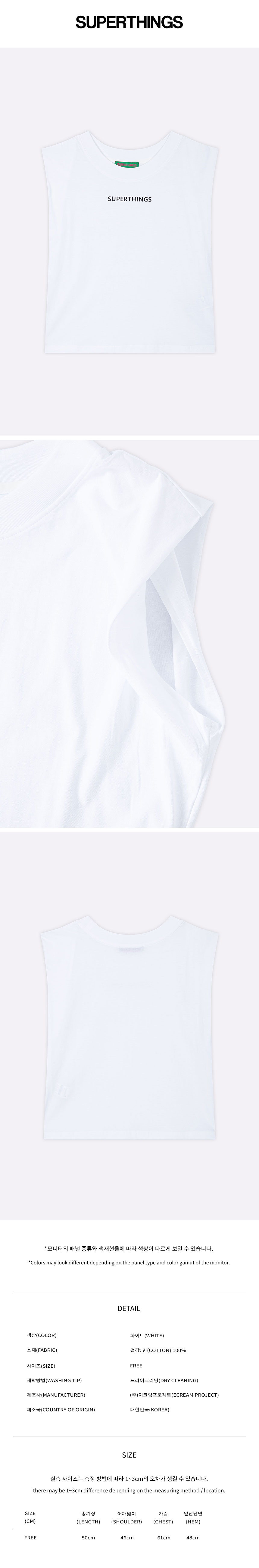 총장 50 어깨넓이 46 가슴단면 61 밑단단면 48