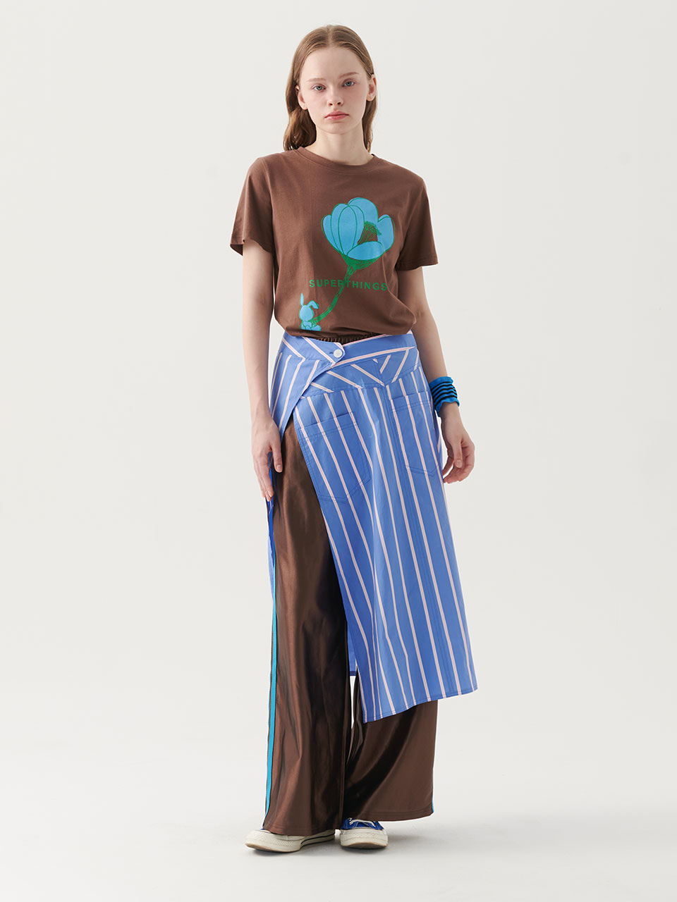 스트라이프 레이어드 랩스커트 (BLUE)_ST25SSAC851