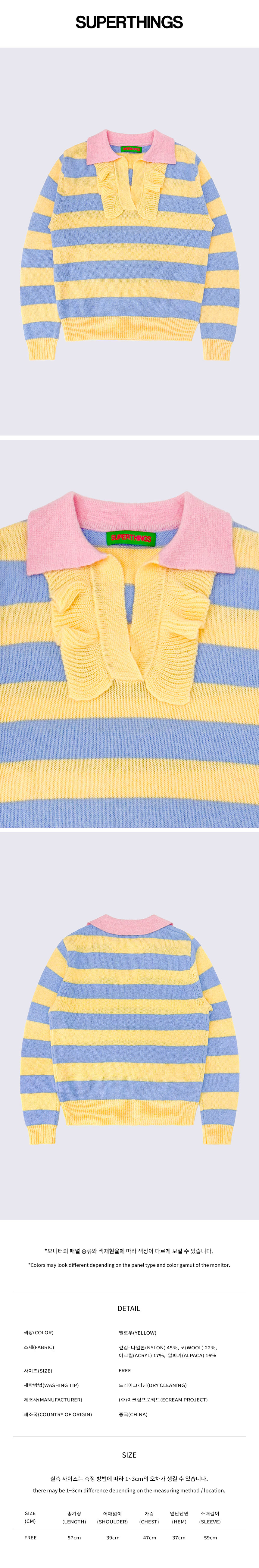 - 컬러 블록 포인트 단가라 풀오버 니트.