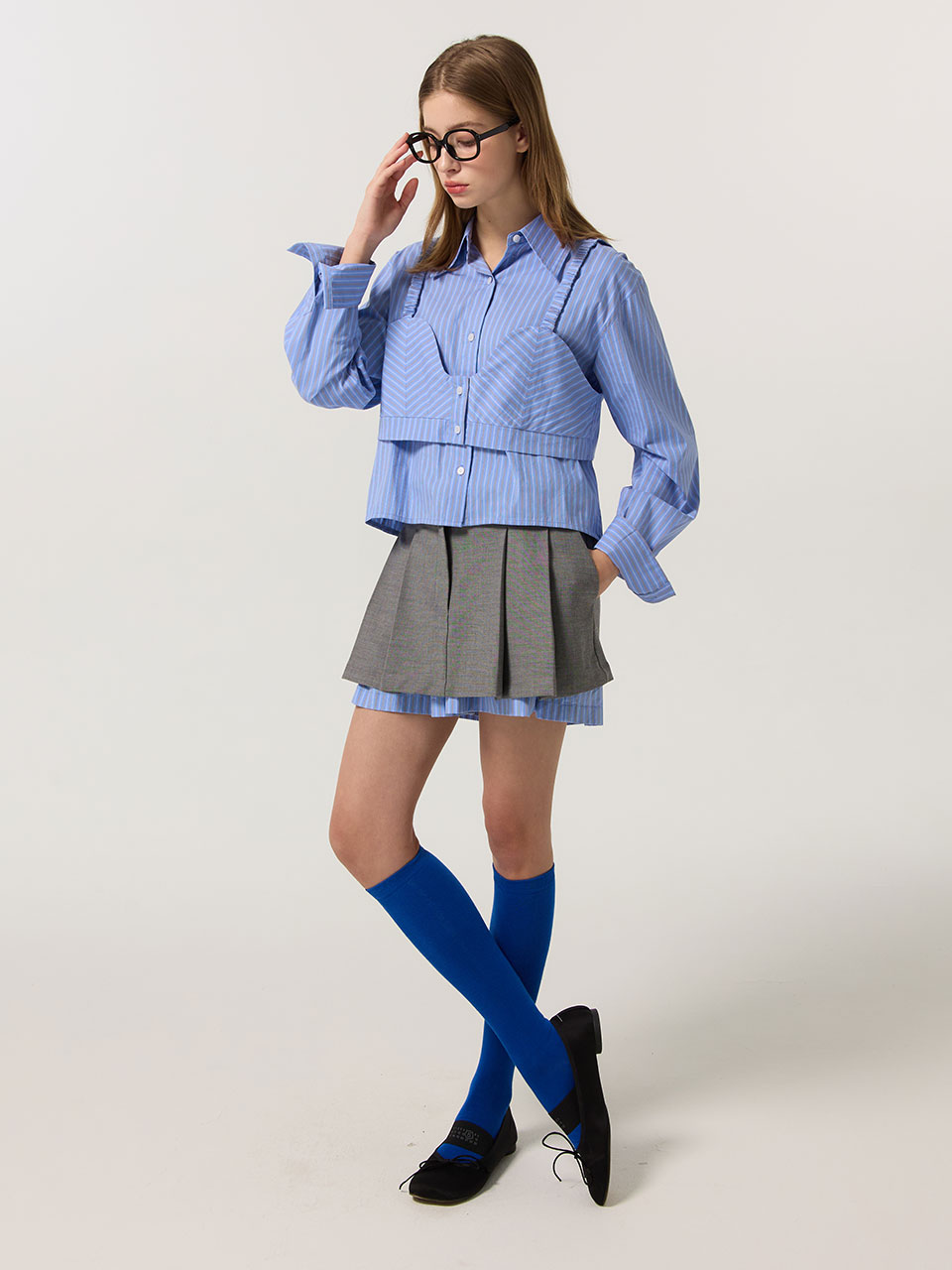스트라이프 레이어드 스커트 팬츠 (GREY)_ST25FWPT924