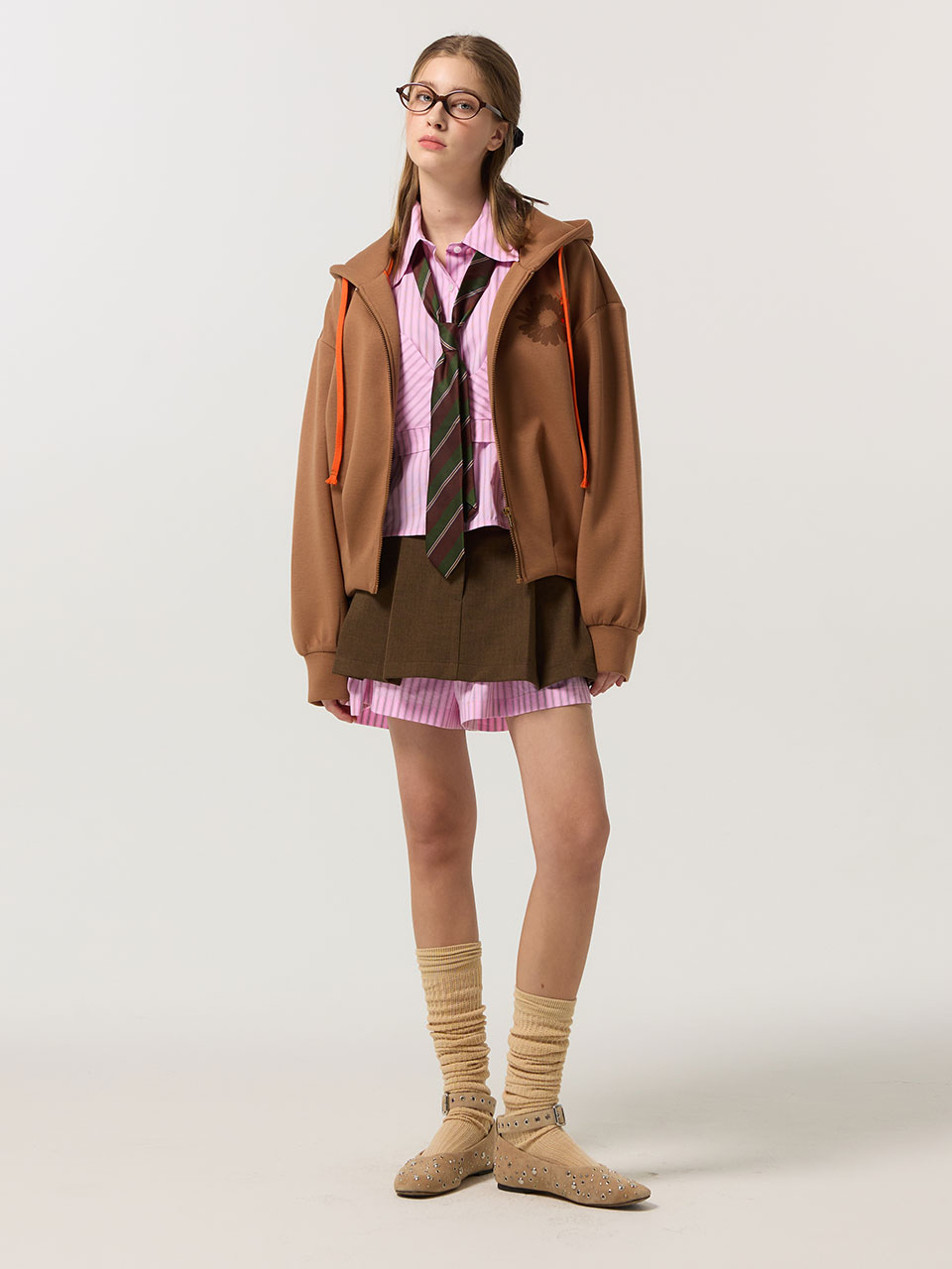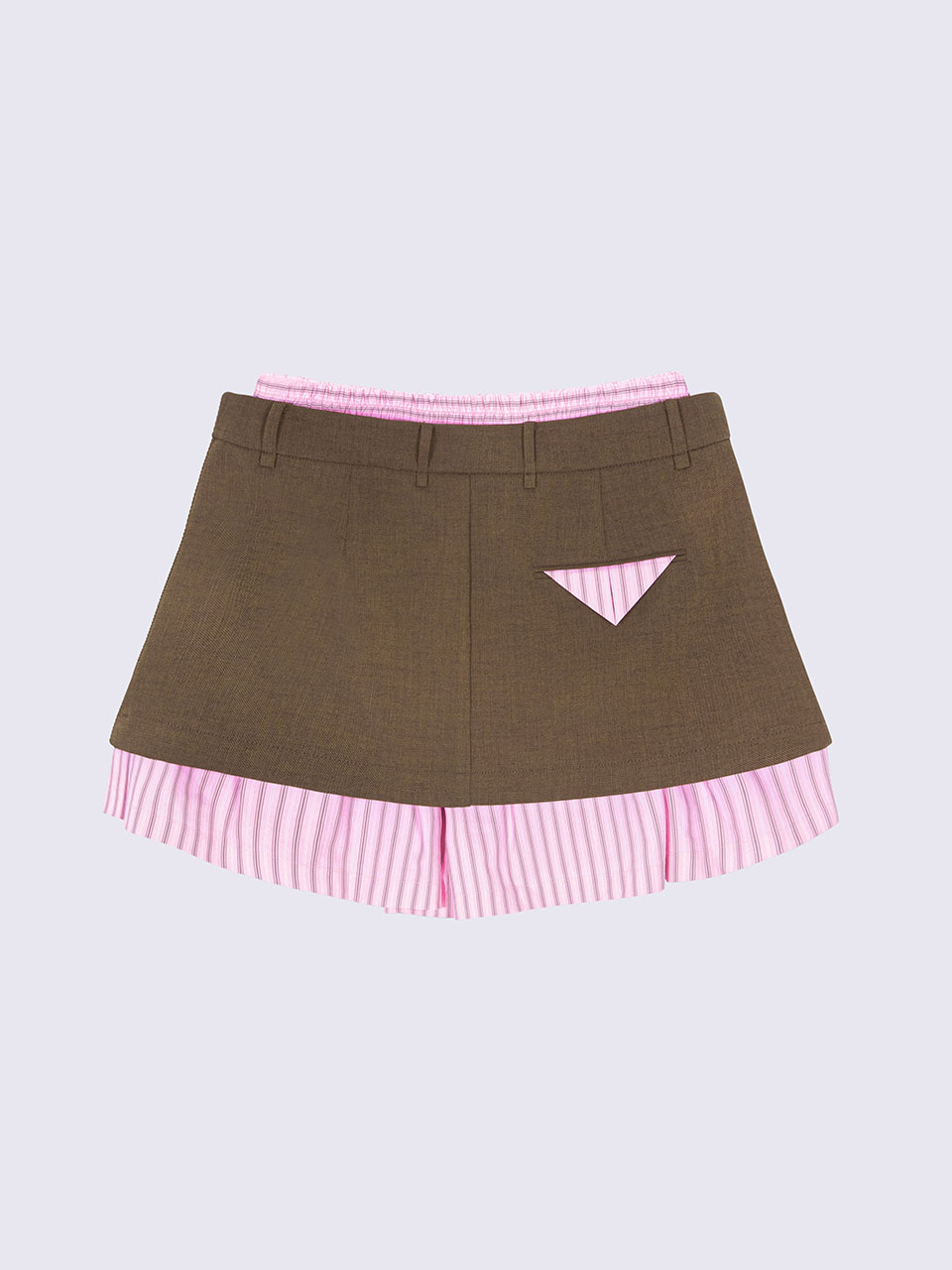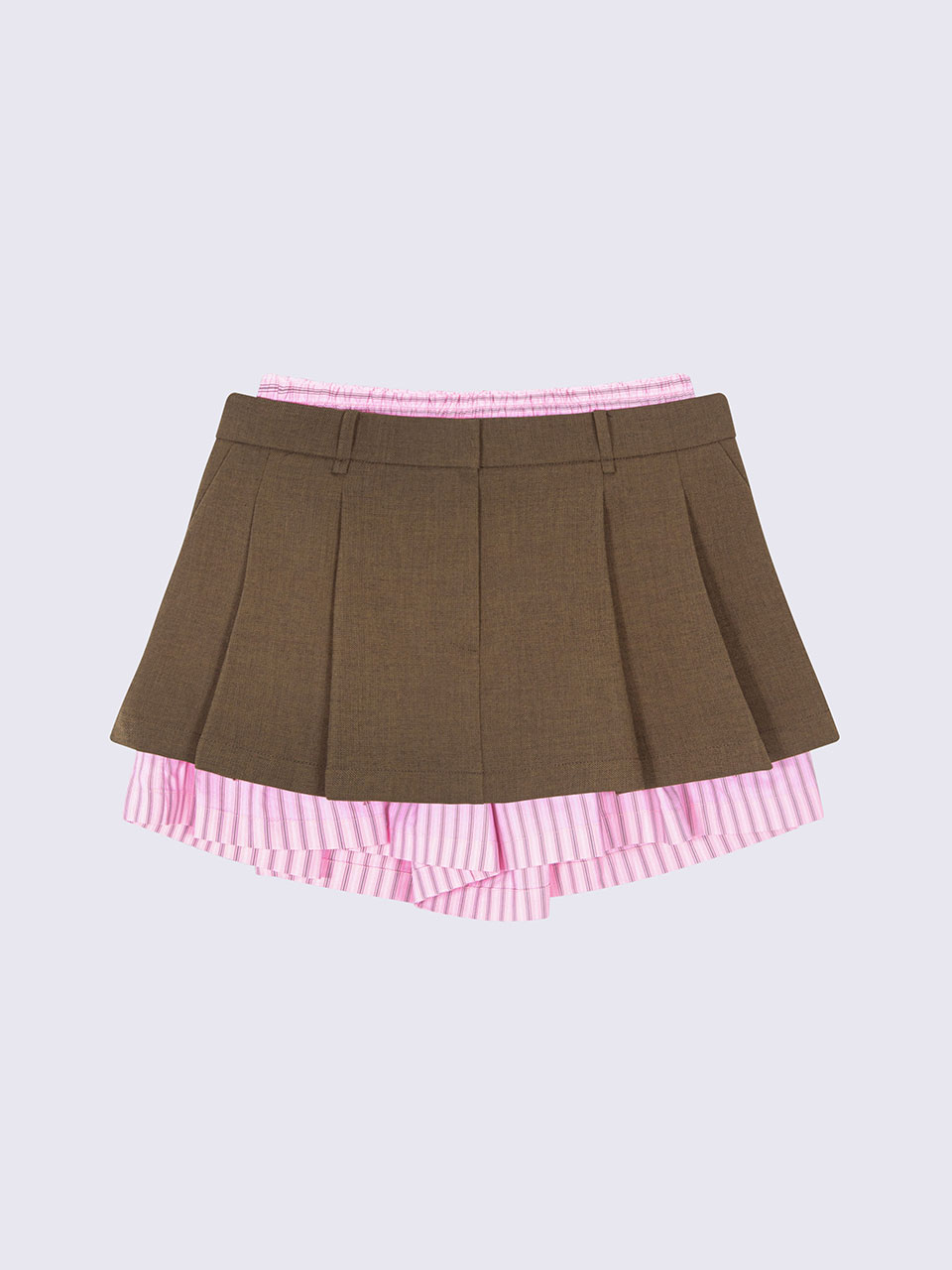 스트라이프 레이어드 스커트 팬츠 (BROWN)_ST25FWPT924