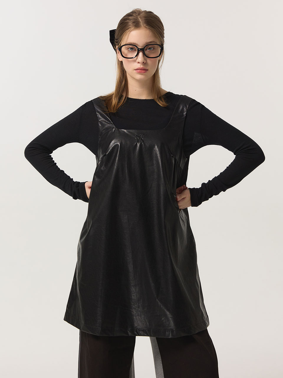 - 믹스 텍스쳐 소재의 레이어드 원피스.