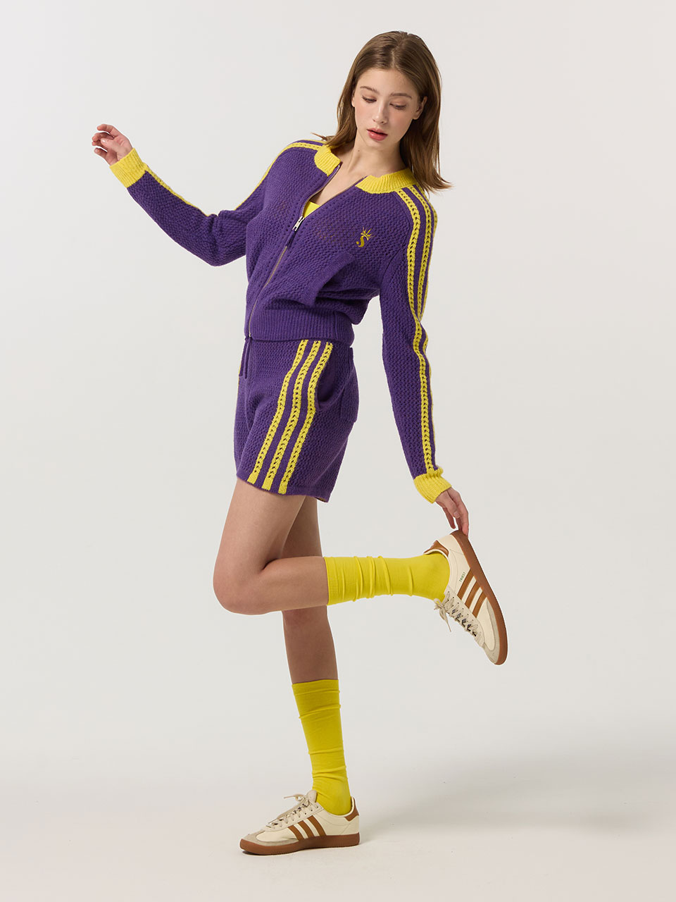 - 크라운 심볼 트랙 니트 집업과 셋업 착용 가능.