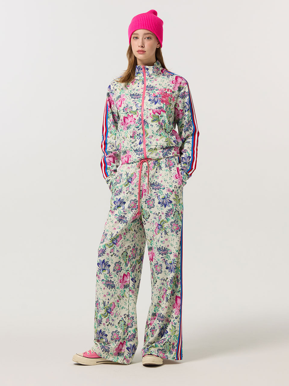 - 전판 플라워 패턴이 돋보이는 시그니처 컬렉션 팬츠.