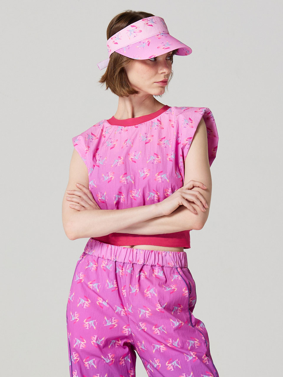 어깨패드 그라데이션 프린트 탑 (PINK)_ST22SSTT351