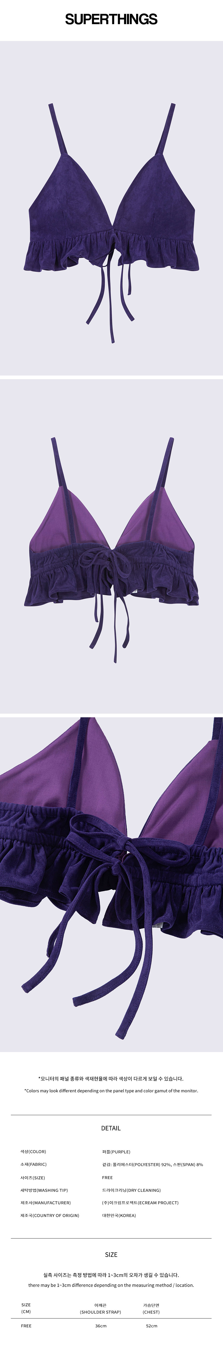 - 등판 스트링 조절로 셔링 연출 및 사이즈 조절.