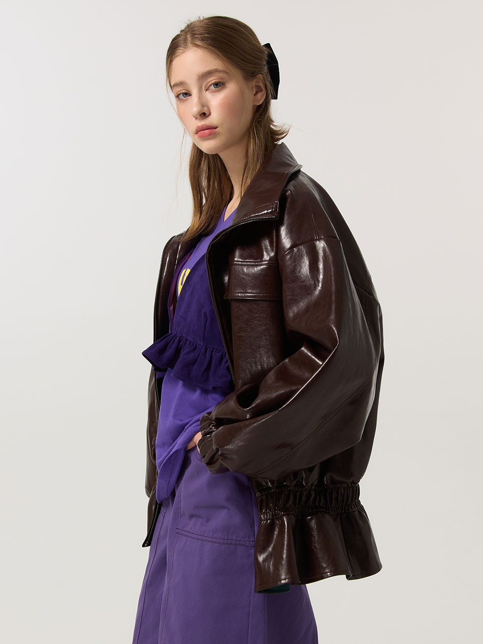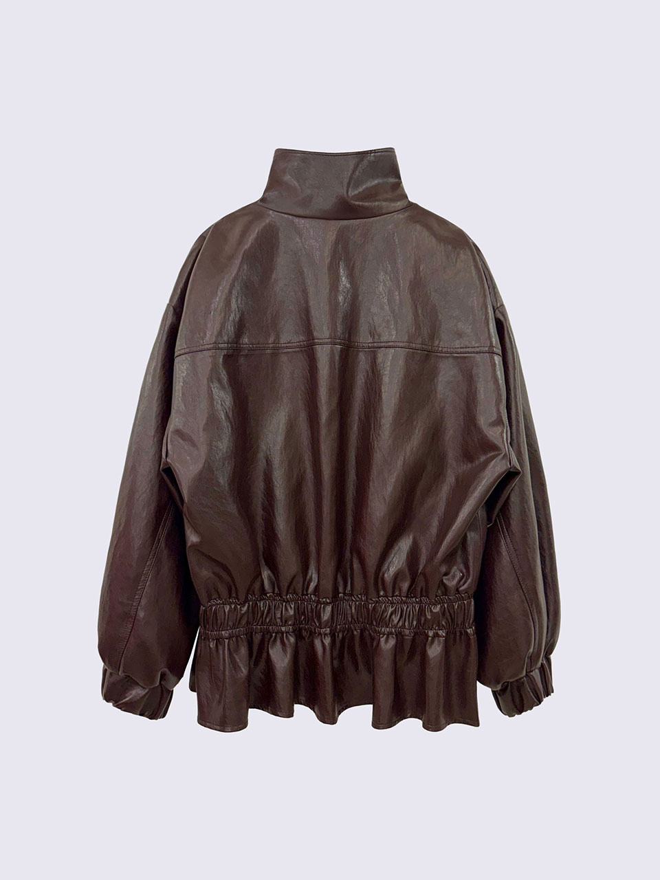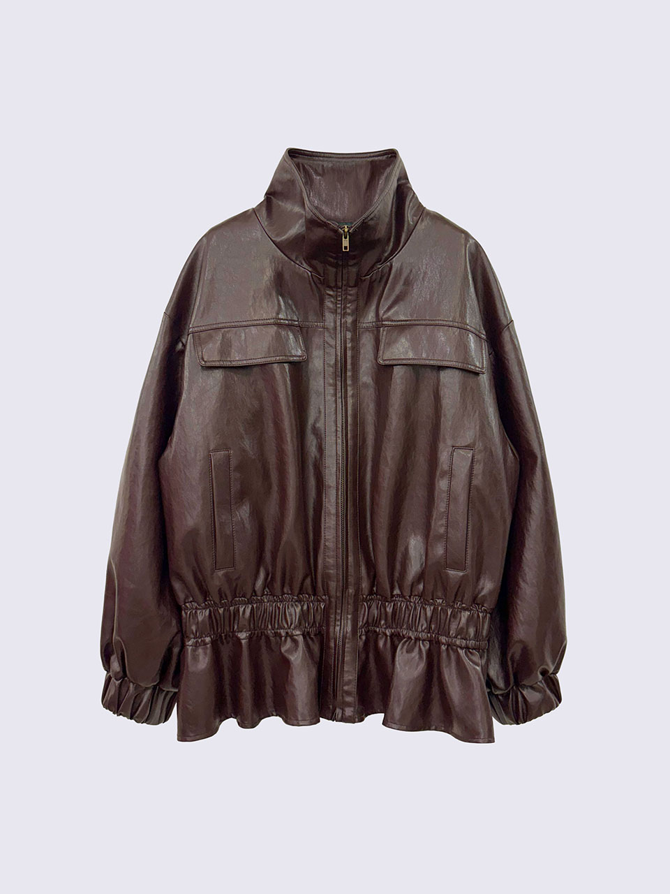 하이넥 프릴 페이크레더 점퍼 (BROWN)_ST25FWJP944