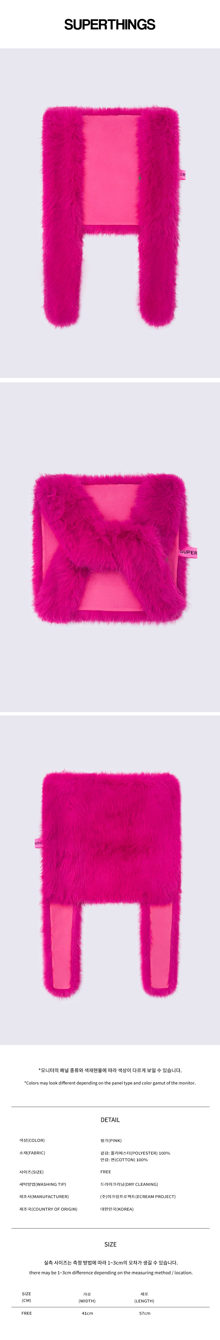 - 핑크 제품의 경우 블루 제품에 비해 털의 길이감이 짧은 점 참고부탁드립니다.