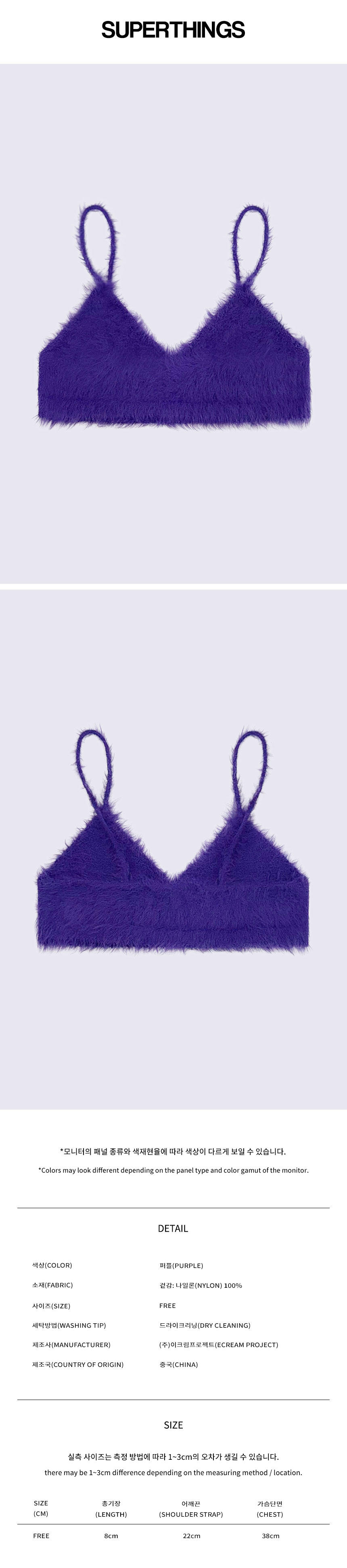 - 크롭한 기장감으로 레이어드 코디 가능.