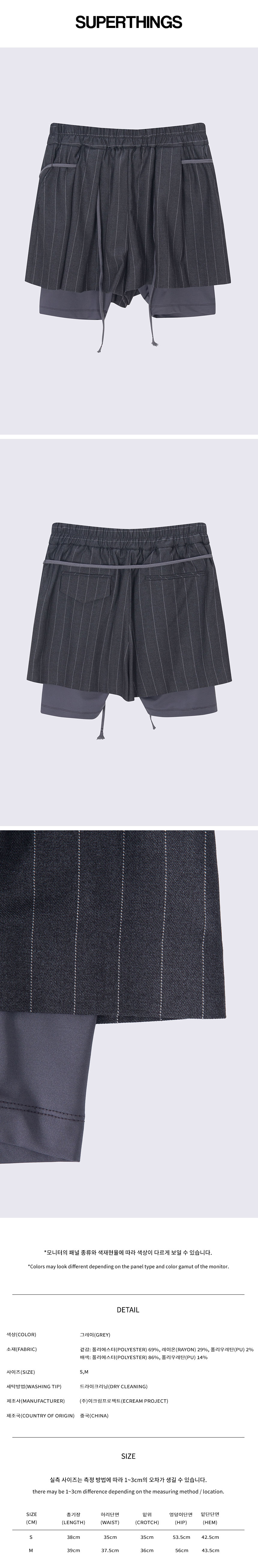 S_총장 38 허리단면 35 밑위 35 엉덩이단면 53.5 밑단단면 42.5