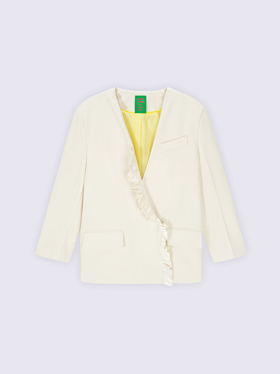 - 프론트 프릴 디테일의 페미닌한 무드의 자켓.