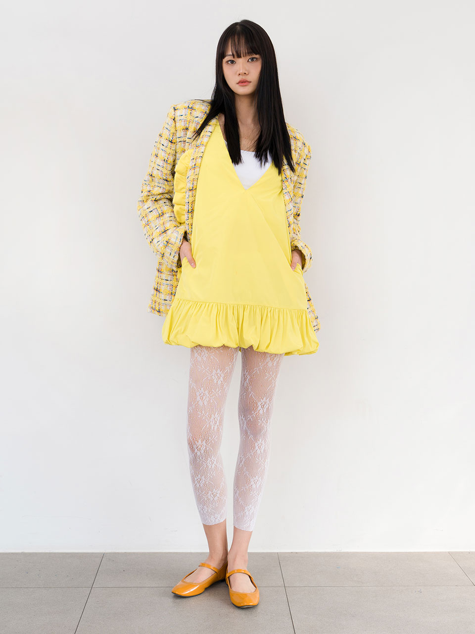 프릴 노카라 트위드 자켓 (YELLOW)_ST26SSJK1022