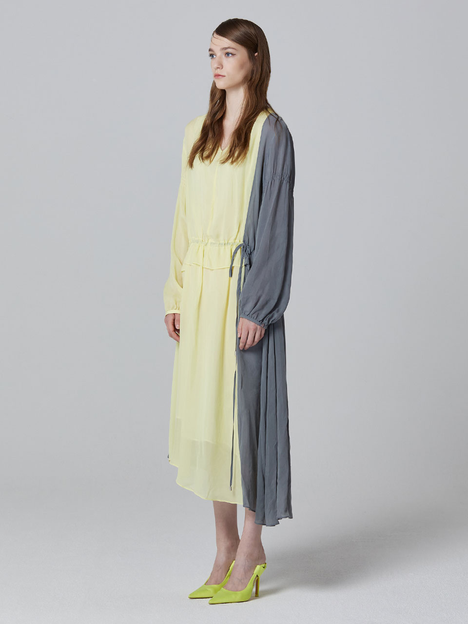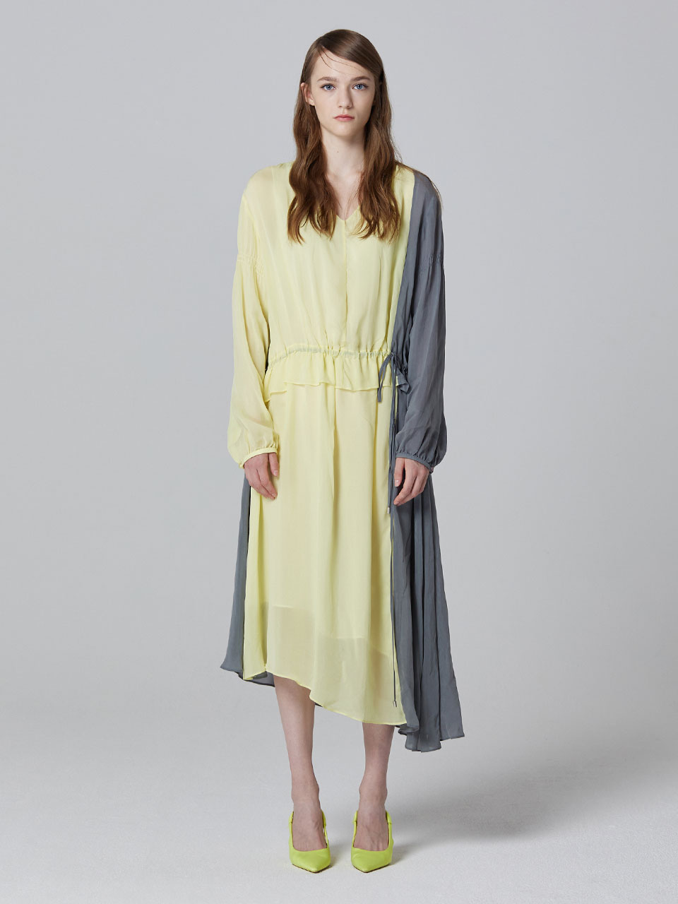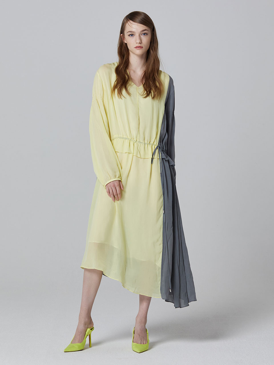 콘트라스트 브이넥 원피스 (YELLOW)_ST19SSOP177