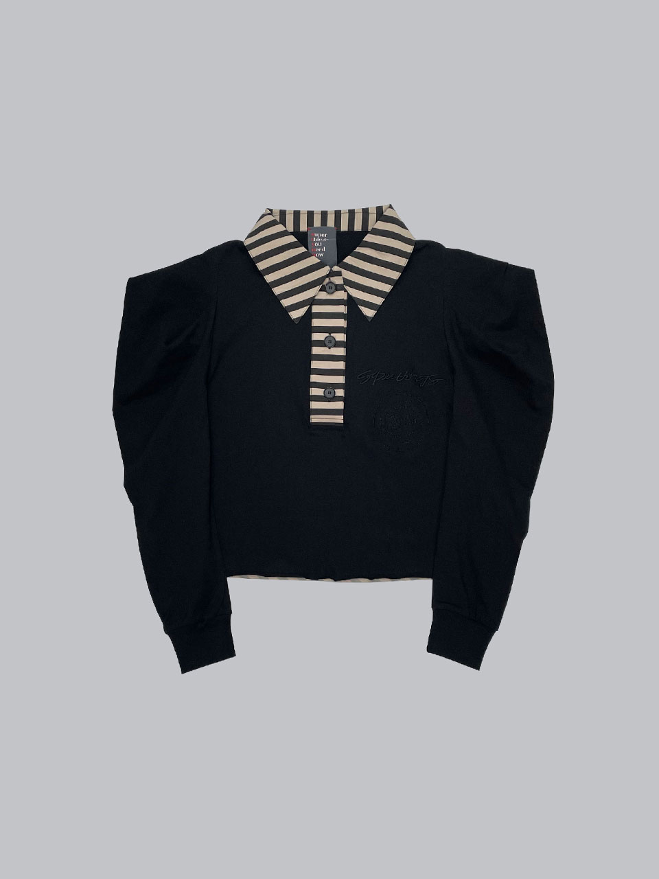 스트라이프 포인트 티블라우스 (BLACK)_ST22FWBL367