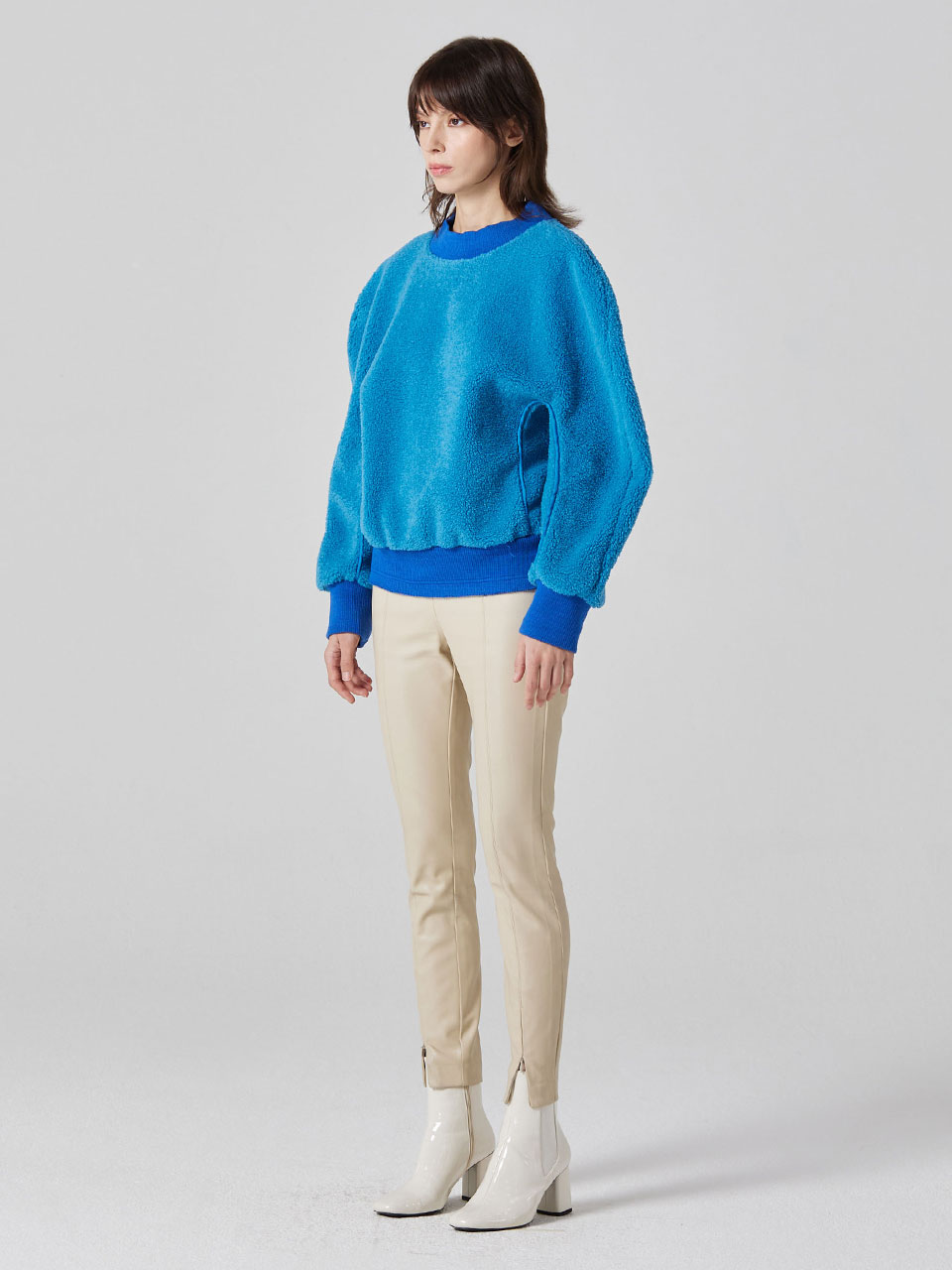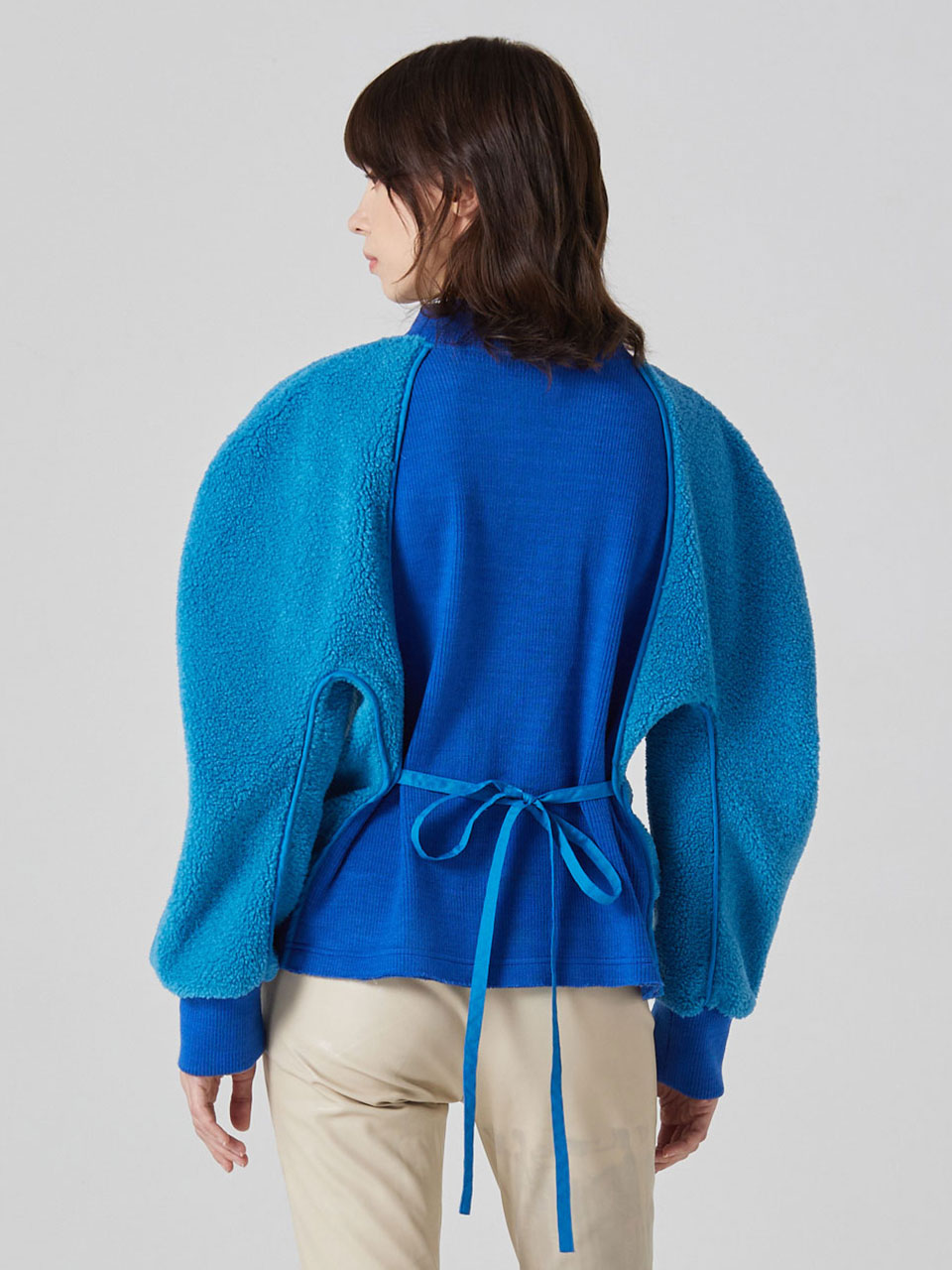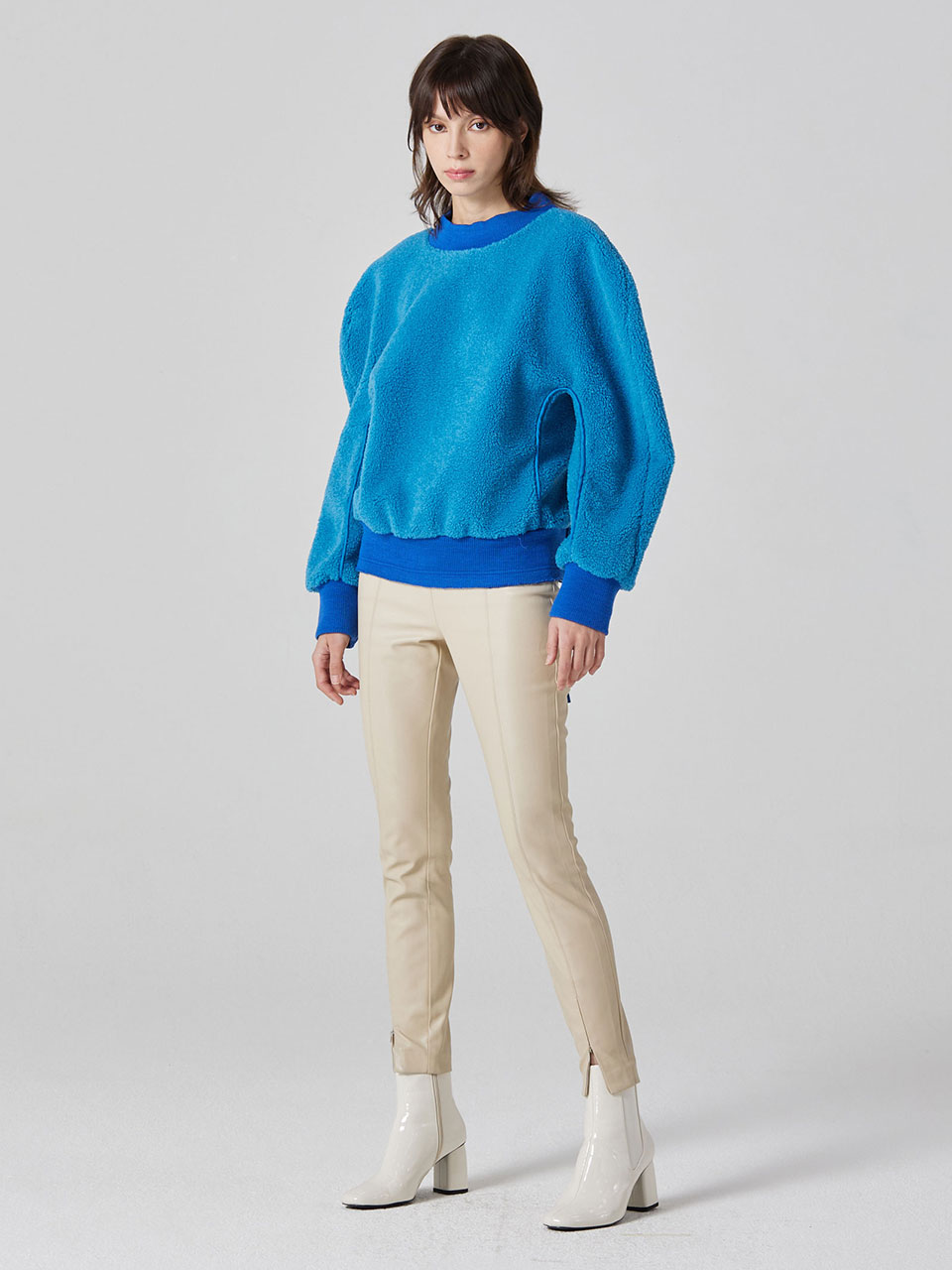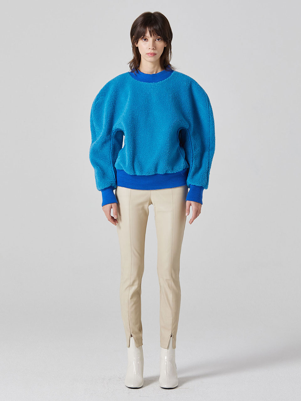- 볼륨감 있는 슬리브에 여유로운 핏 라인으로 연출하여줌.