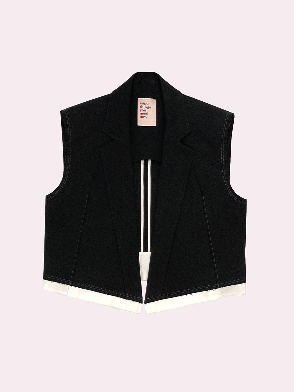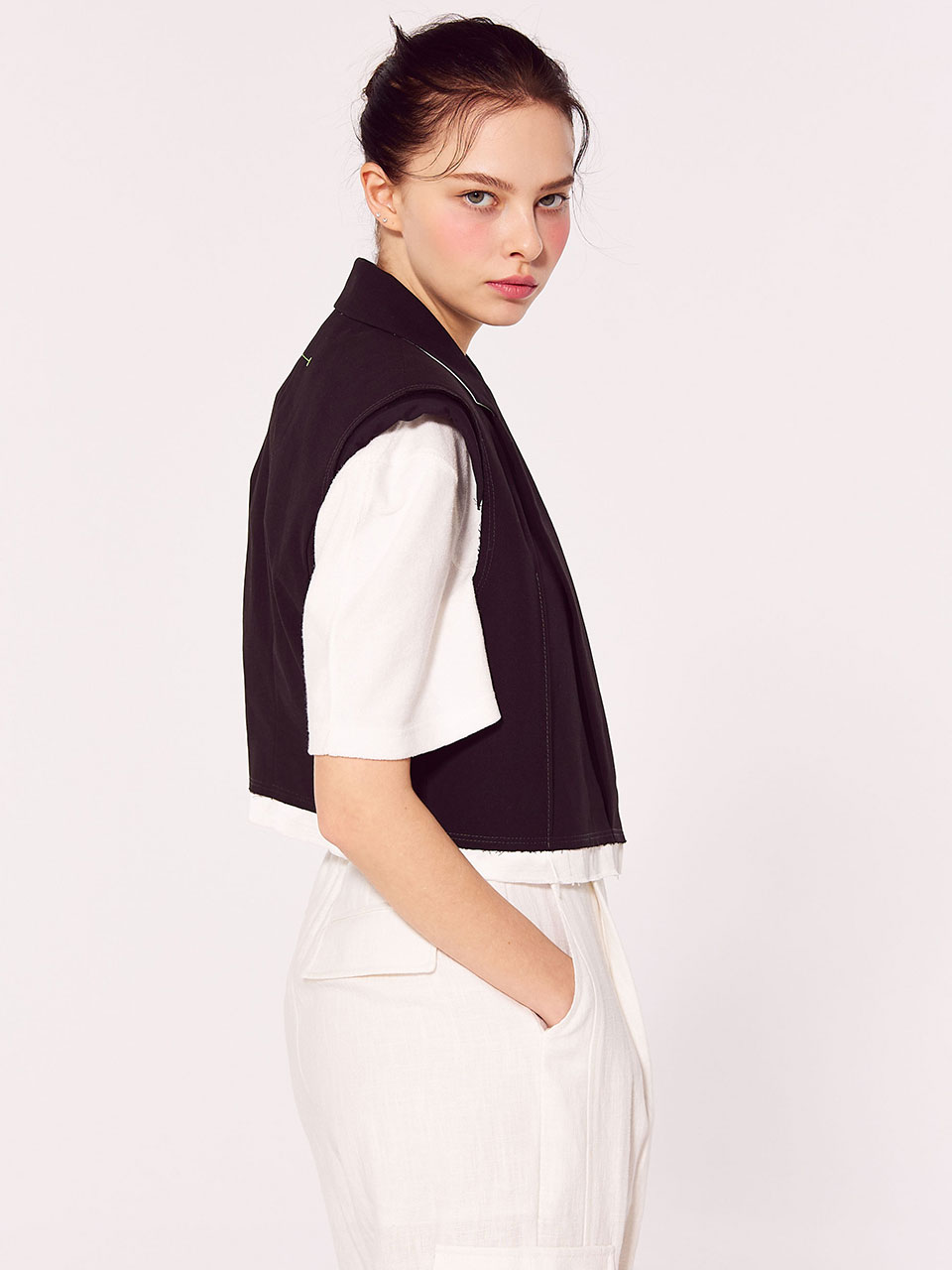 배색 로엣지 크롭 볼레로 자켓 (BLACK)_ST23SSVT443