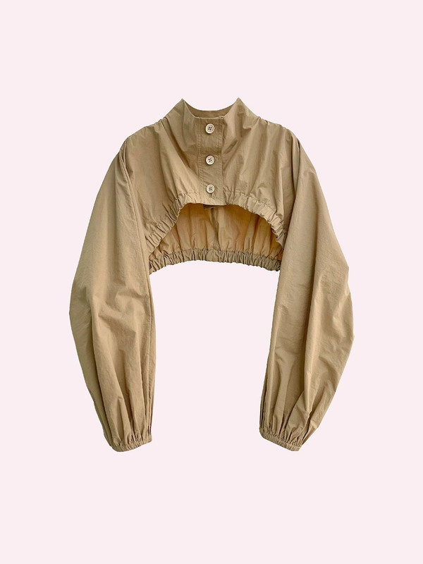 - 유니크한 무드가 돋보이는 크롭 볼레로 윈드브레이커입니다.