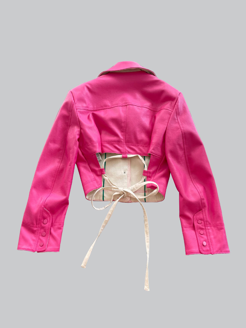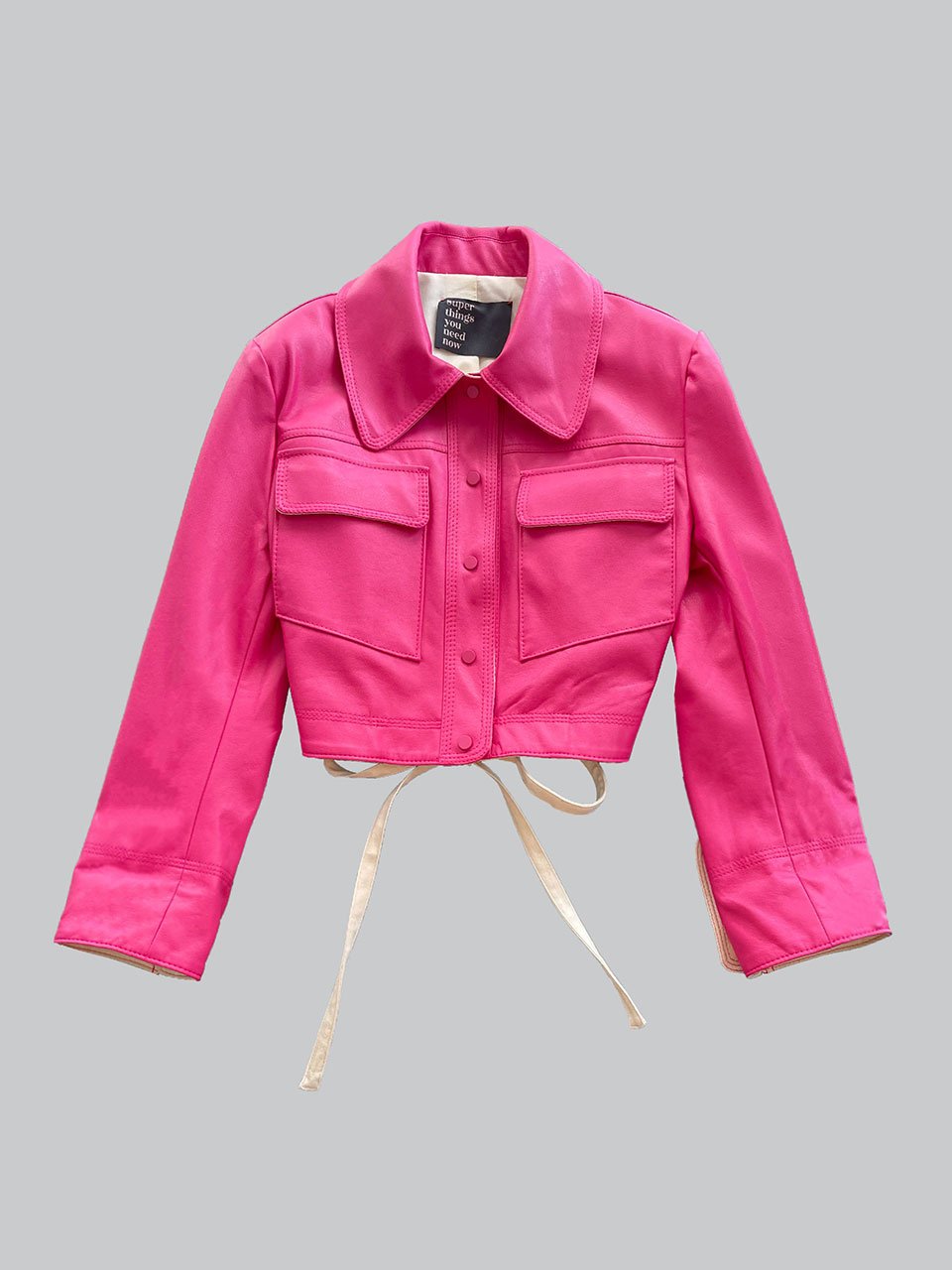 허리핏 레더라이크 자켓 (PINK)_ST22FWJK371