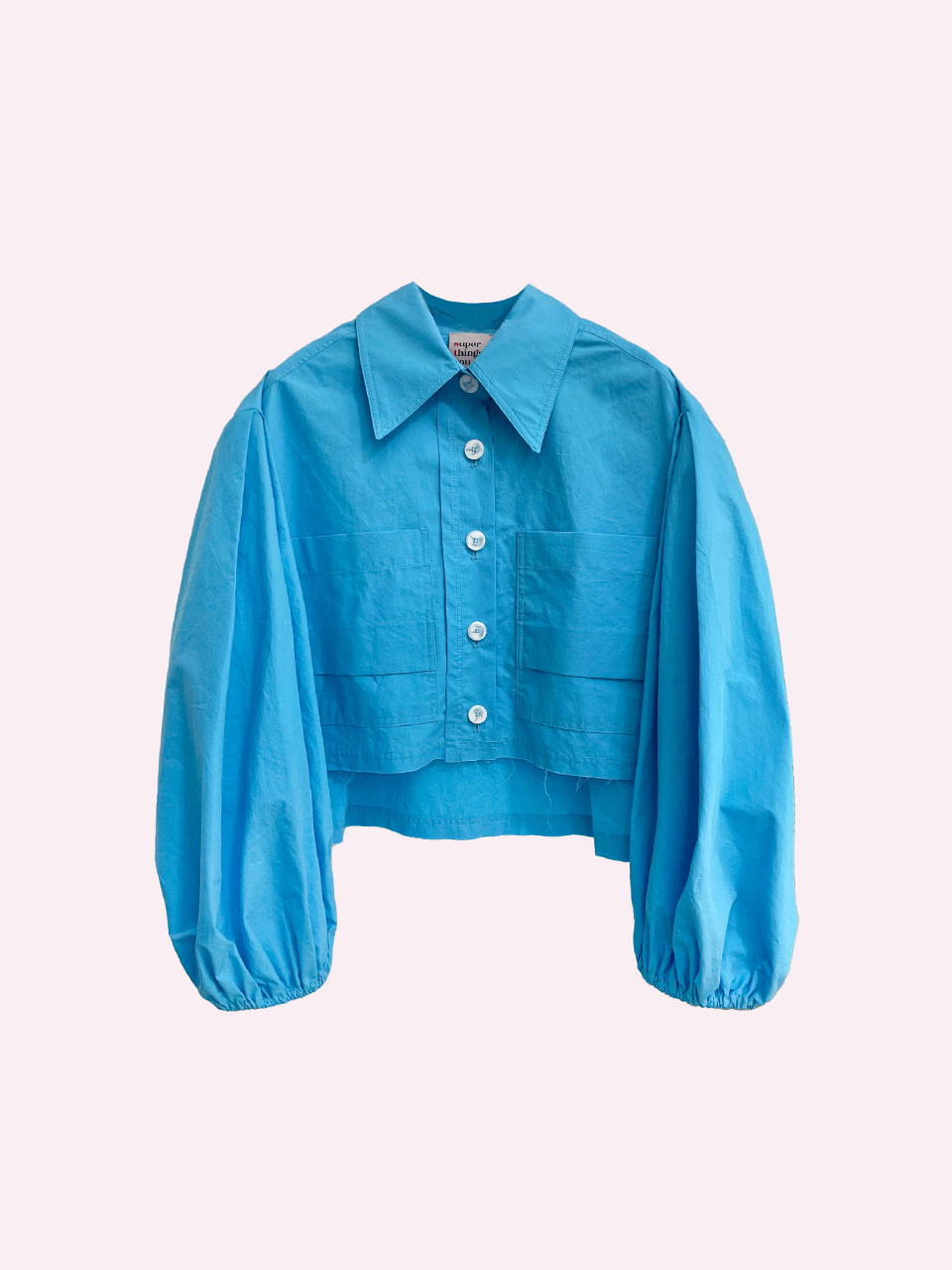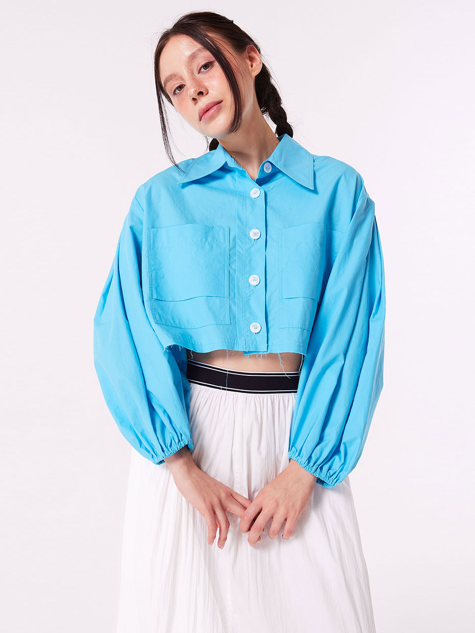 크랍 벌룬 소매 블라우스 (AQUA BLUE)_ST23SSBL476