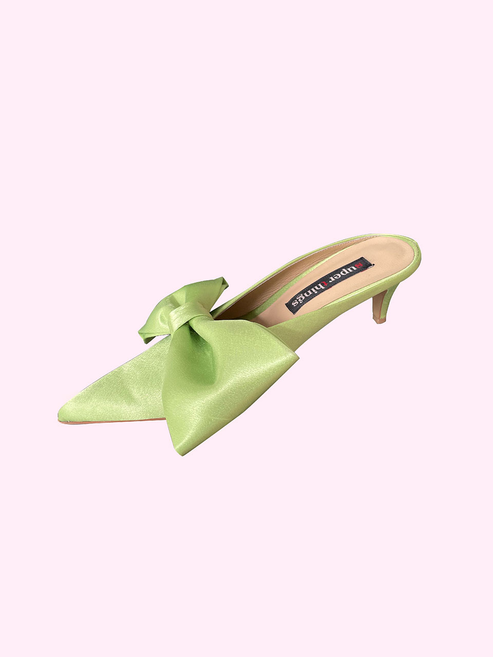 - 탈착 가능한 리본 장식으로 포인트 연출이 가능한 스틸레토 뮬 힐 입니다.