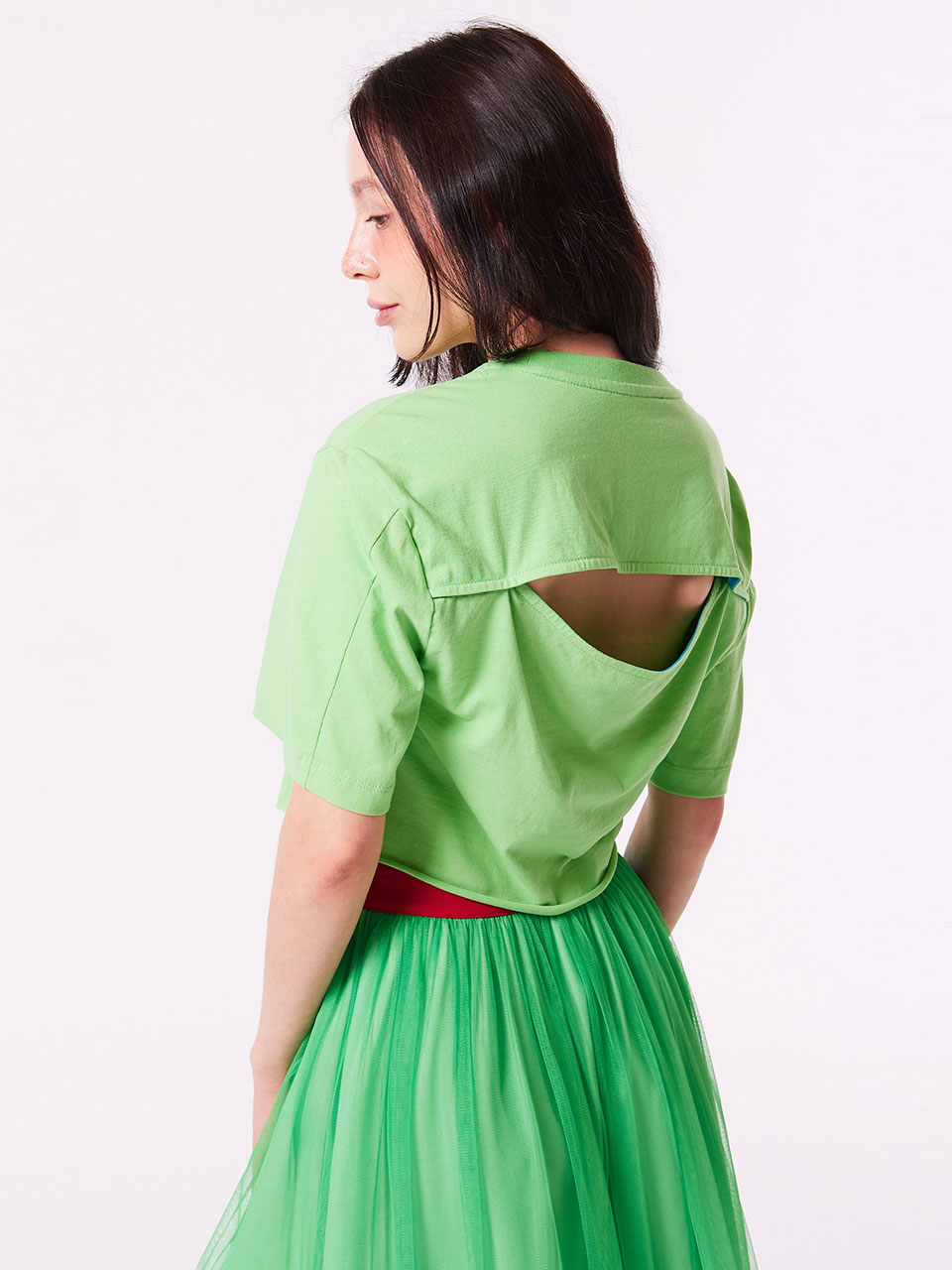 로고 포인트 컷아웃 크롭 티셔츠 (GREEN)_ST23SSTS495