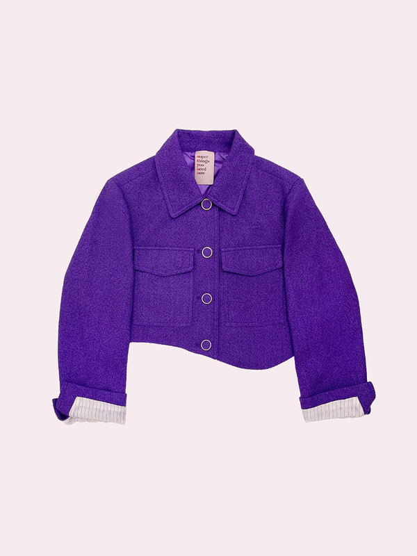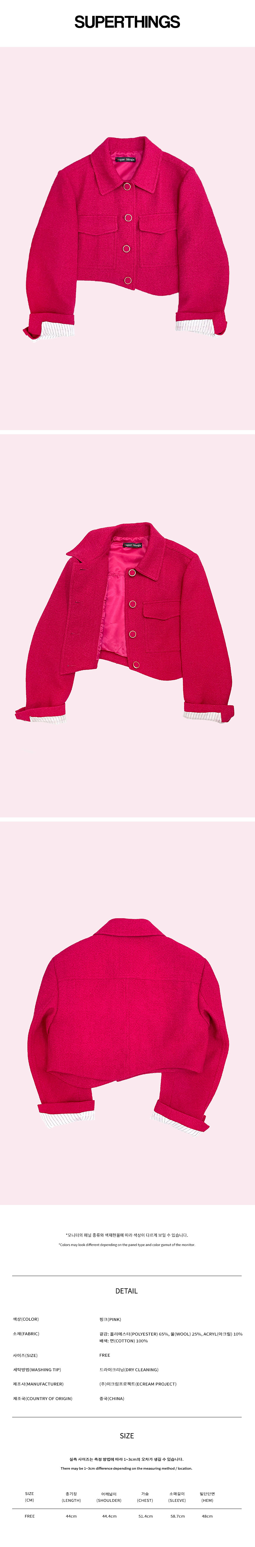 - 언밸런스한 밑단 디자인이 돋보이는 크롭 자켓입니다.