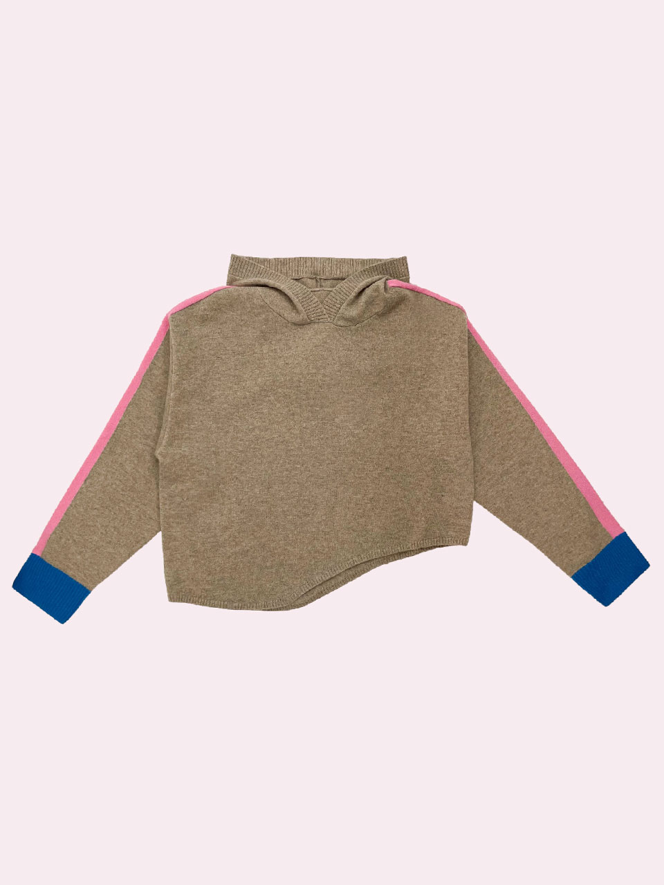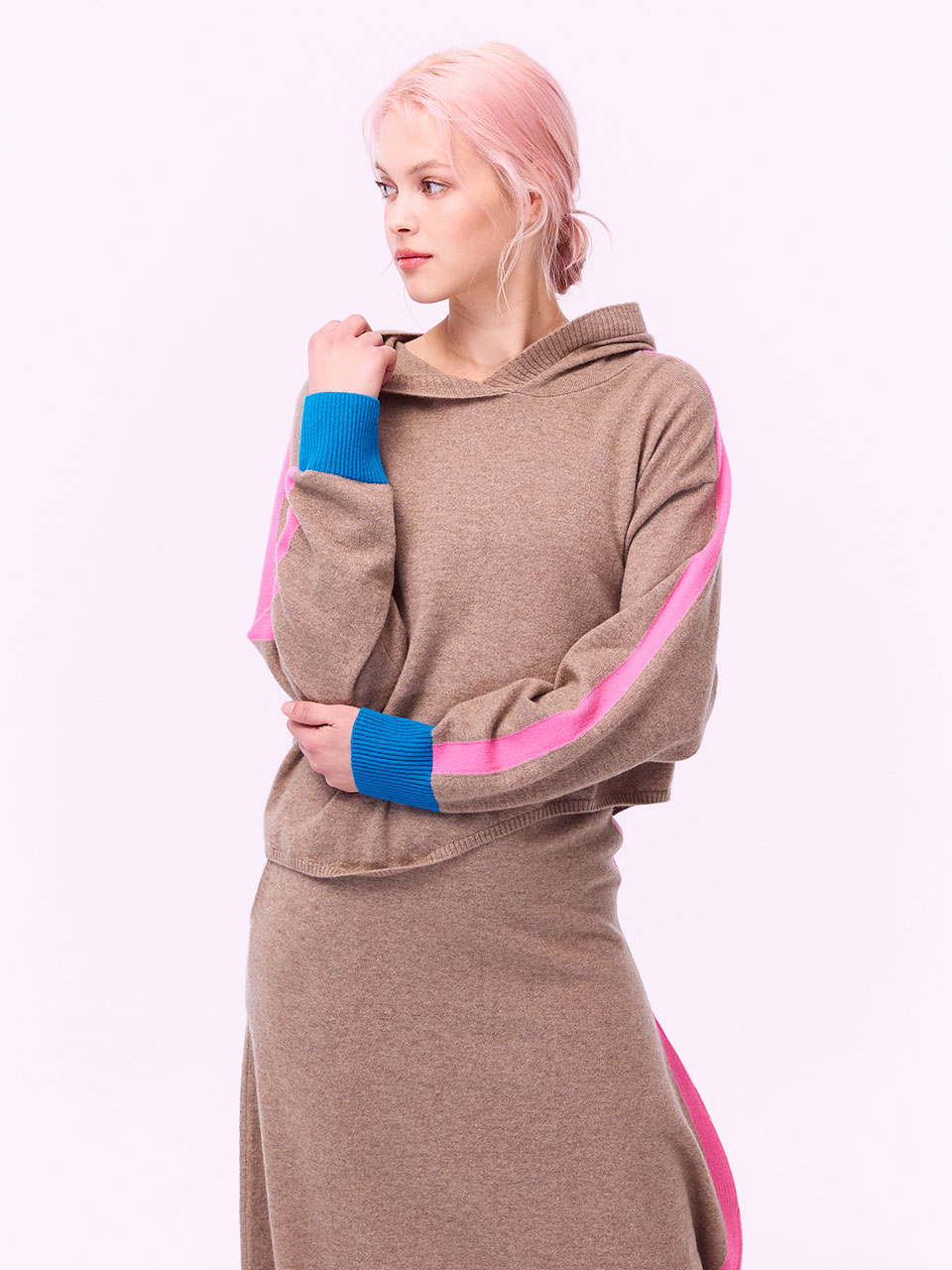 캐시미어100 컬러 배색 후디 (OATMEAL)_ST23FWKN552