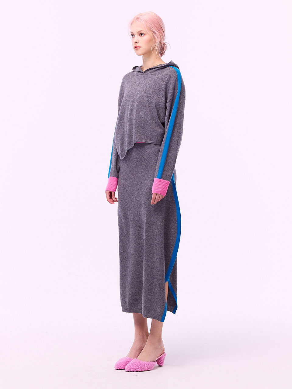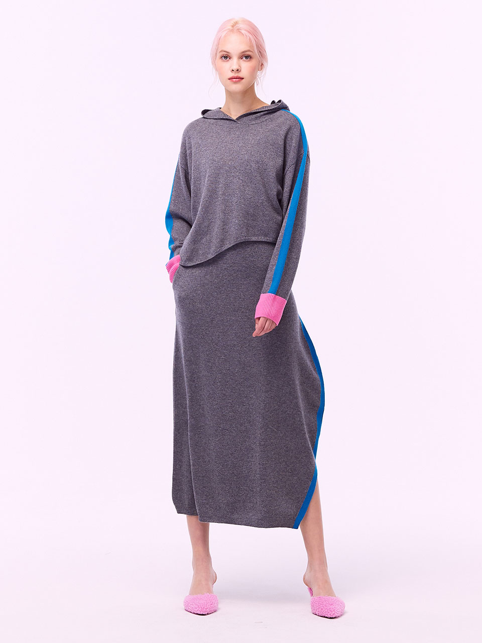 - 캐시미어100 컬러 배색 후디와 셋업 착용이 가능합니다.