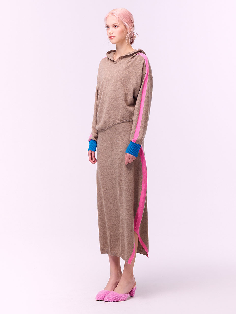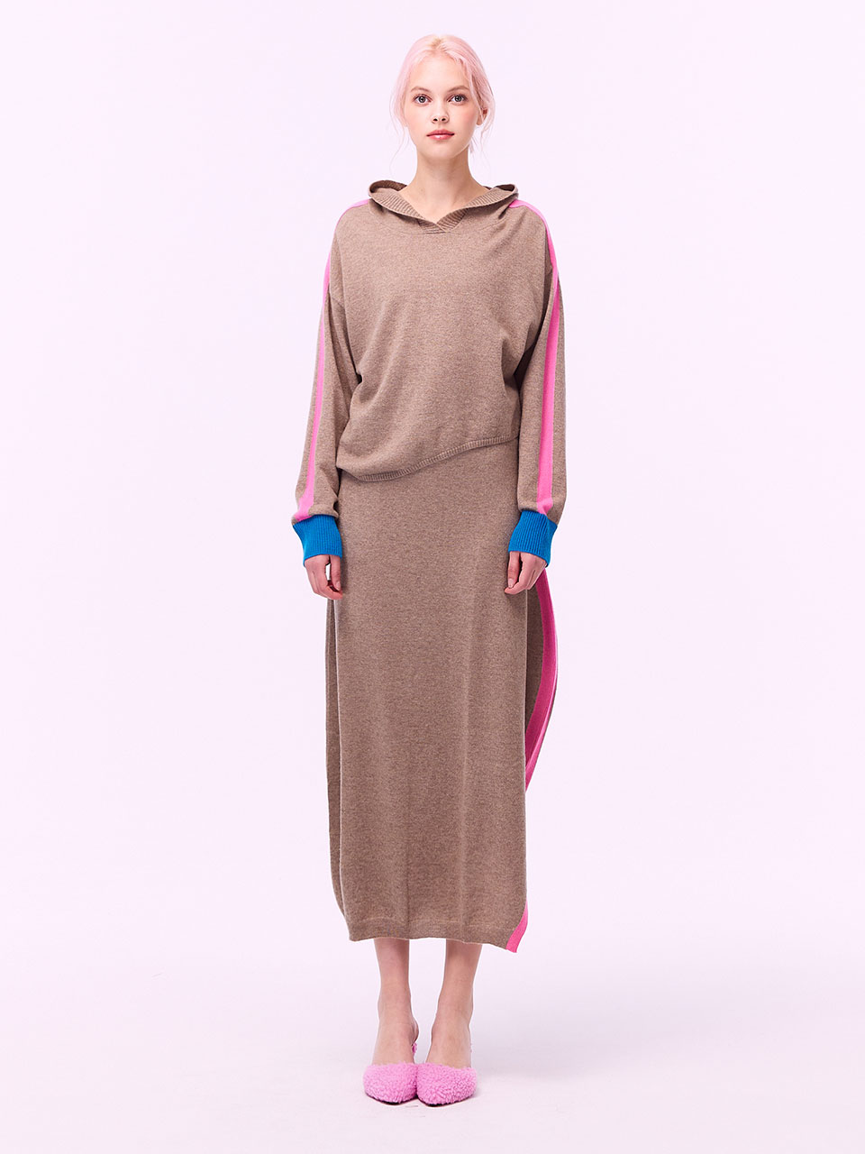 - 캐시미어100 컬러 배색 후디와 셋업 착용이 가능합니다.