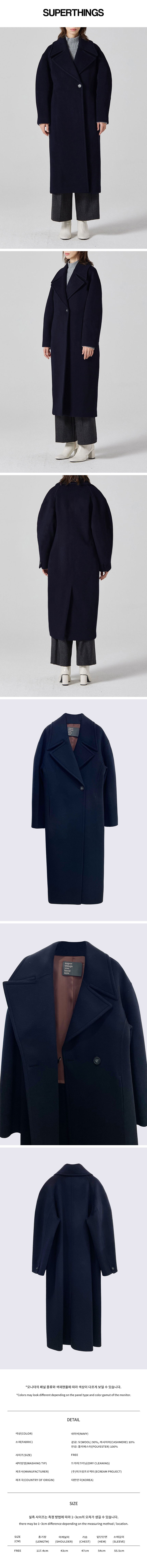 - 볼륨감있는 슬리브로 풍성한 실루엣의 롱 코트입니다.
