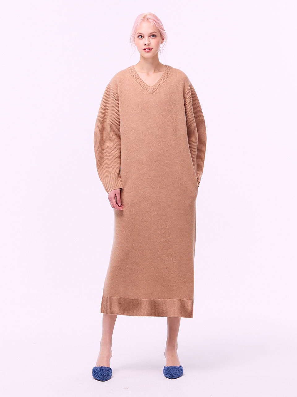 울 100 니트 롱 원피스 (CAMEL)_ST23FWKN562