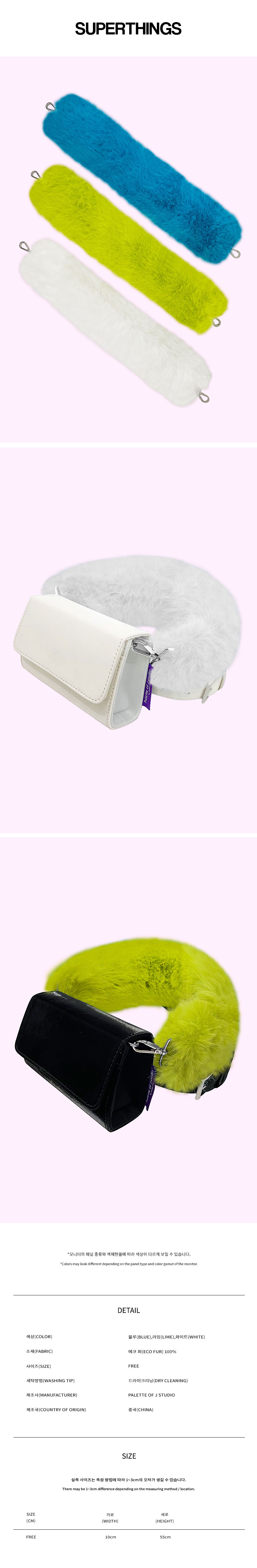 - 칼라감이 돋보이는 페이크 퍼 스트랩입니다.