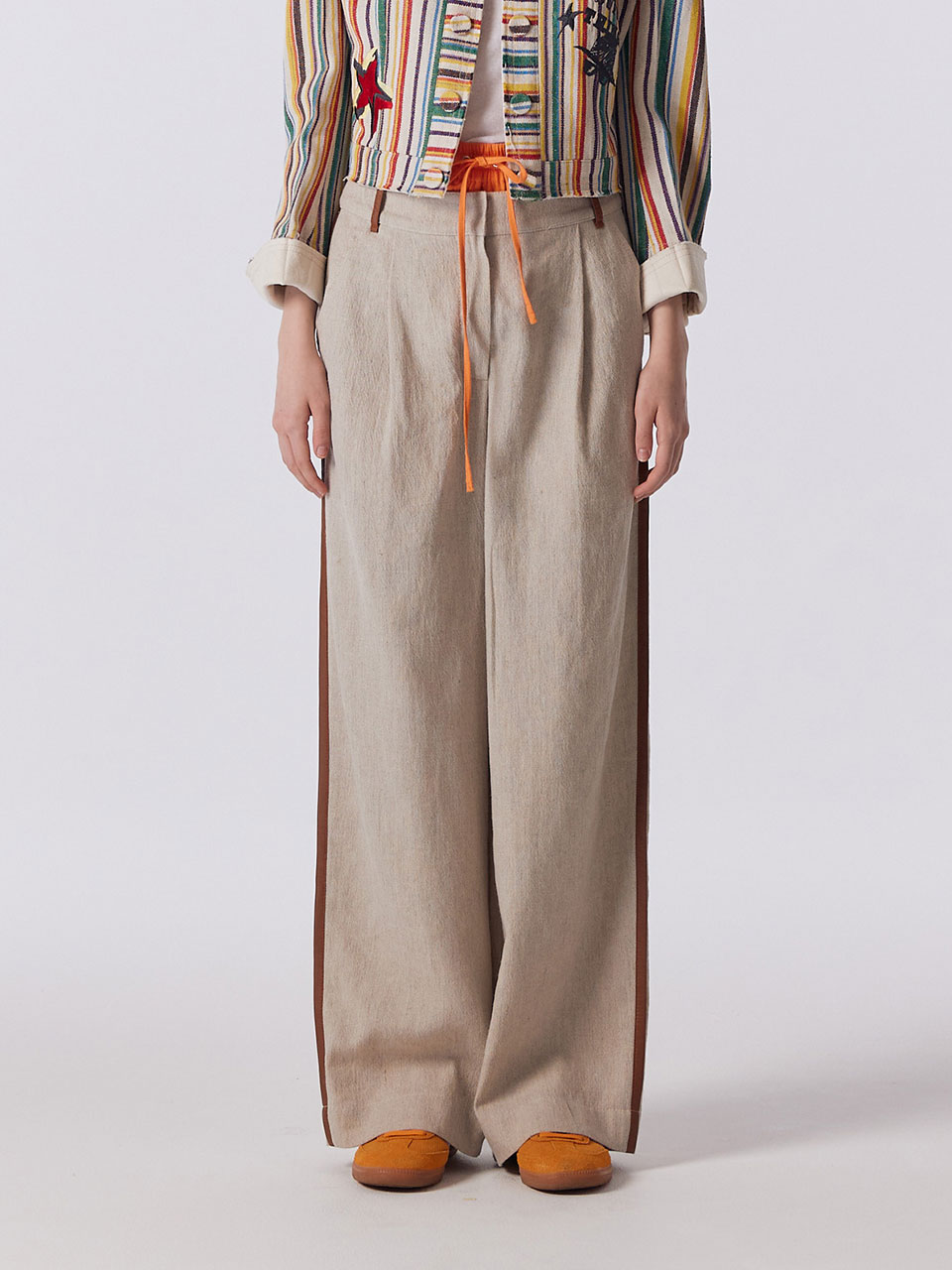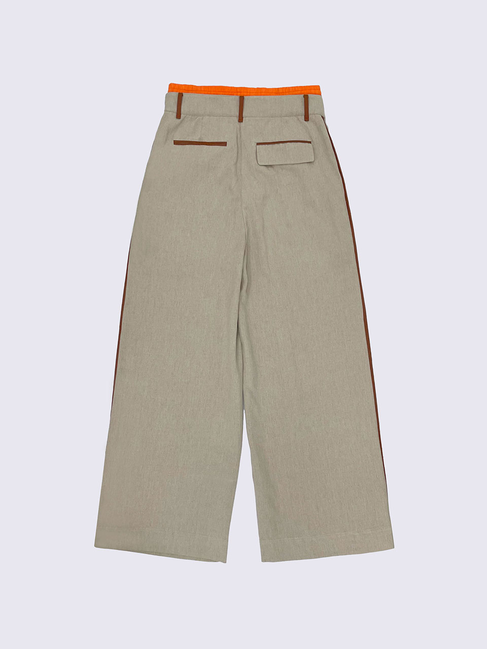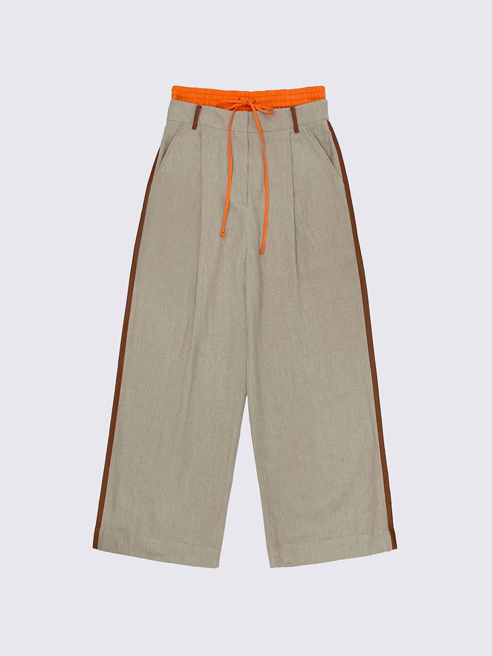 - 오비 배색 디테일이 돋보이는 웨이스트 팬츠.