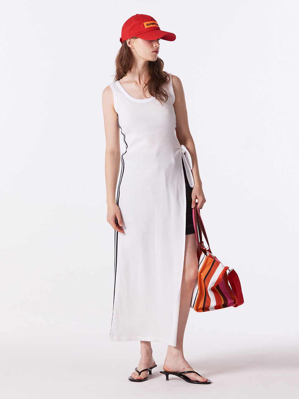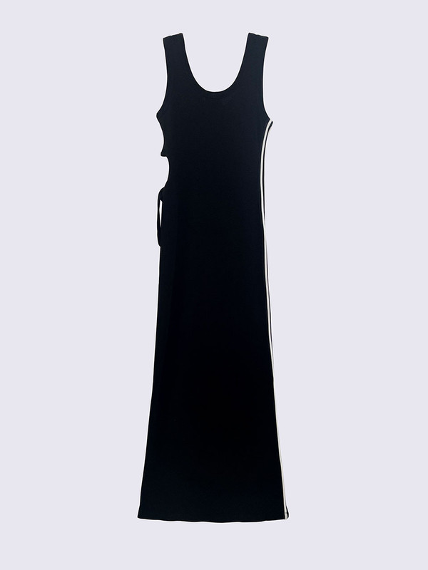 - 사이드 라인 배색 포인트 슬리브리스 원피스.