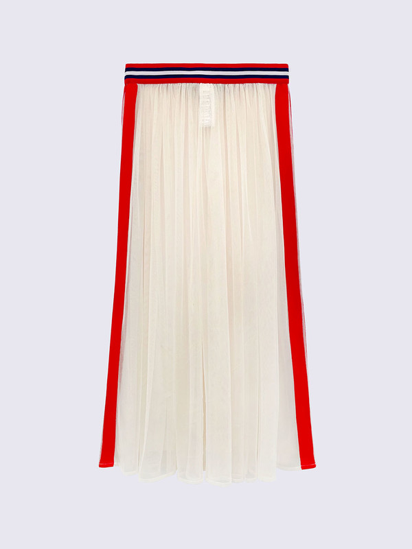 - 배색 테잎 디테일이 돋보이는 샤 스커트.