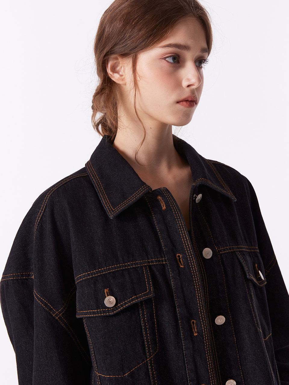 가먼트워싱 데님 자켓 (BLACK)_ST24FWJK719