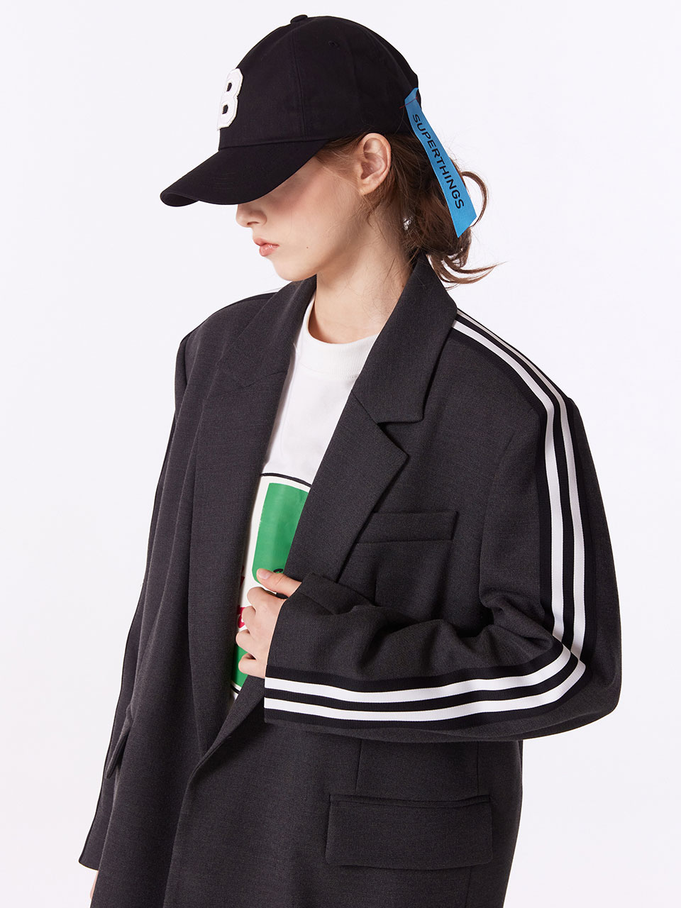 - 테잎 포인트 팬츠와 셋업 착용 가능.