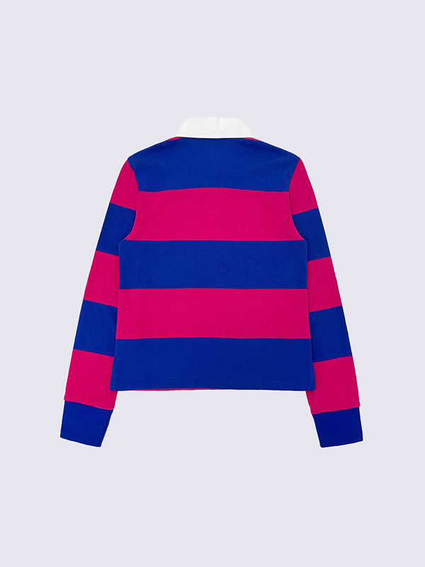 - 가슴판 사이드 토끼 자수 포인트 럭비 티셔츠.