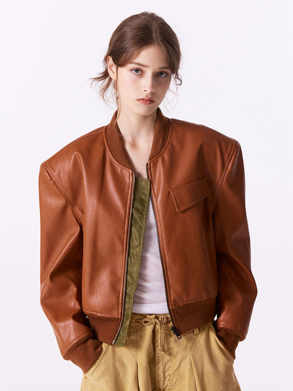 페이크 레더 점퍼 (CAMEL)_ST24FWJP749